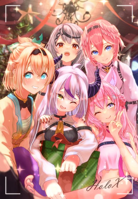 HoloXのみなさん1周年本当におめでとうございます! アイドル衣装ライブも常夜リペイントお披露目も本当に最高でした...! 仲良しな5人をこれからも応援しています! #holoX #SSholoX1周年 #laplus_artdesu #いろはにも絵を #こよりすけっち #Luillust #さかまた飼育日記