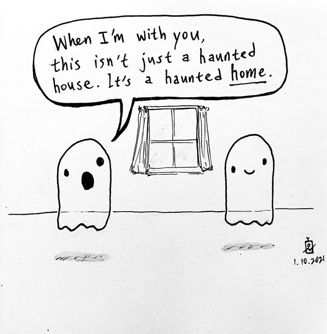Ghosting goals. Hope you’re finding your happiness, internet-friends 👻💗🤖 #inktober52home #inktober2021home #inktober52 #inktober #webcomic #comic #ghost #ghosts #cartoon #doodle #sketchbook #art #webtoon #home #ghostinggoals