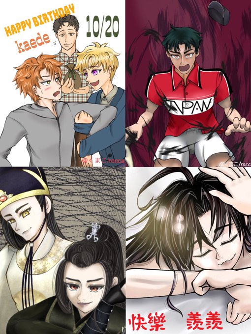 #今月描いた絵を晒す 今日はジャンル垢の方で生誕祭中ですが!ジャンル垢の分含めると4枚+4コマかなーもう1枚描きたかったのあったけど時間足りなすぎた🫠 11月もおたおめ中心に描いてく。シチュエーション設定しっかりして背景もちゃんと描くの目標🙃