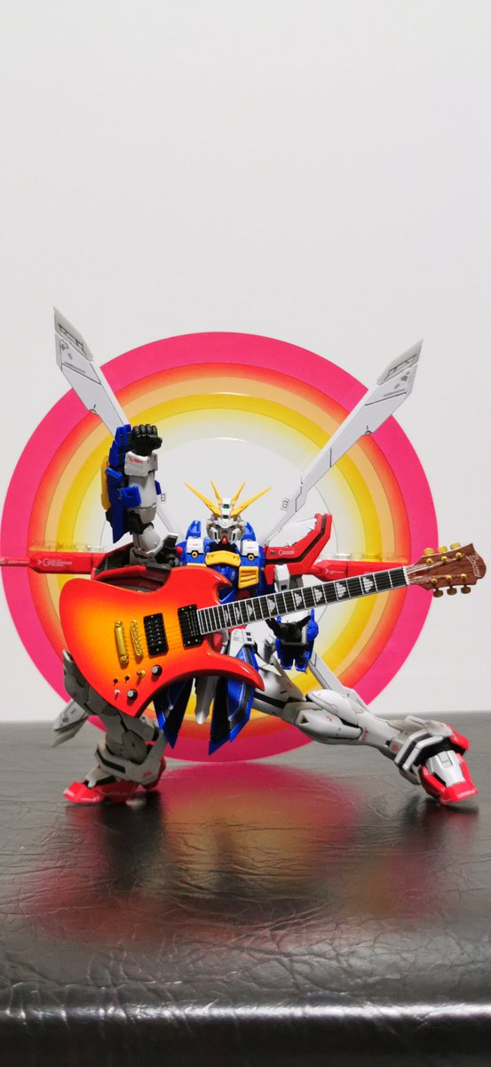 流派東方不敗は 王者の風よ 全新系裂 天破侠乱 見よ! 東方は赤く燃えている!! #ガンプラの画像を貼るとRTされると聞いて #ガンプラ #どっちも王者 #イングウェイ #ギターはこれしかなかったので許して
