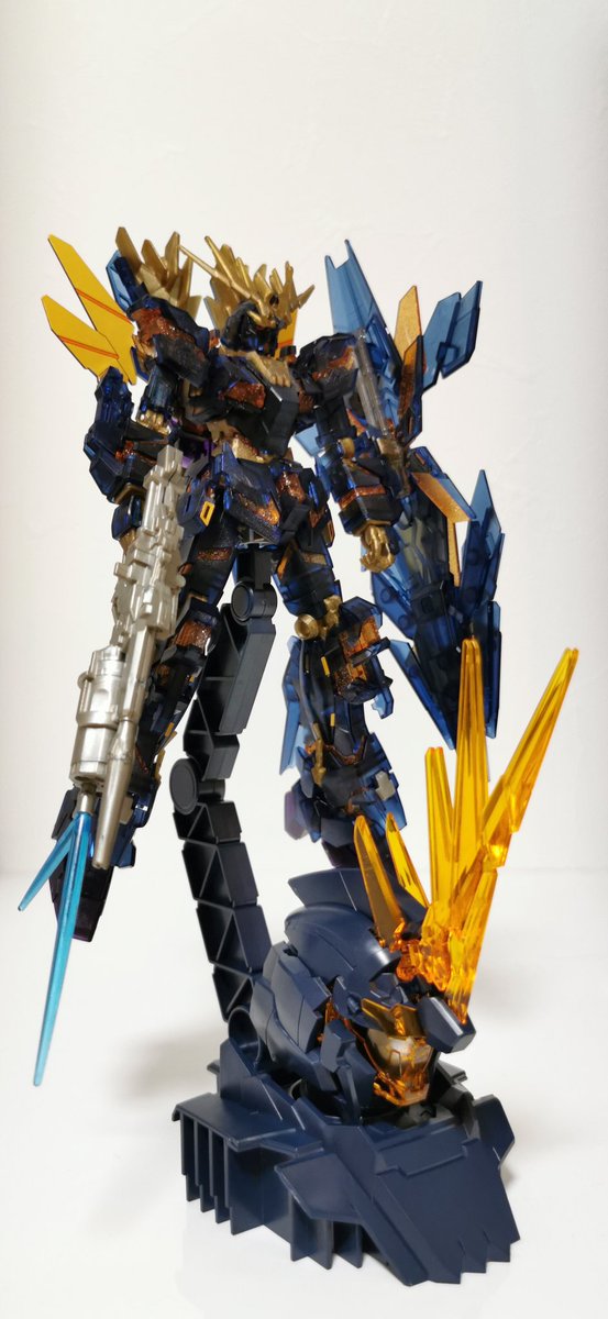 ヘッドディスプレイベース完成。 本体がデストロイモードなのでベースはユニコーンモードでバランス取ってみました〜 バンシィは動きが無くても派手派手なので、ポーズはあえて素立ちの方が降臨感があって好きです #ガンプラ好きと繋がりたい #ガンプラの画像貼るとRTされると聞いて