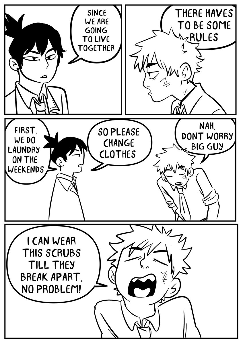 Last chapter made me wonder how denji might had gotten new clothes to change on aki’s apartment, so here, I think this is how it went down #chainsawman #chainsawmanfanart #denji #akihayakawa