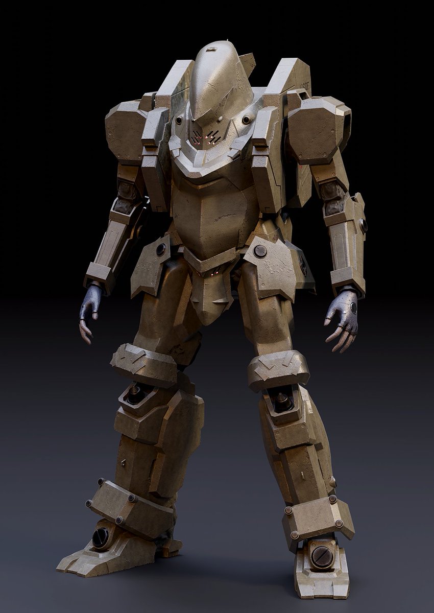 倉持キョーリューさん(@kyoryu_kuramo)の新刊に向けて制作してるダムスのモデル及びテクスチャが完成しました~ 次はリギング作業やダムス用の武器を作っていきます! ダムスの機体設定はこちら twitter.com/codebeast_info… #blender #b3d #コードビースト
