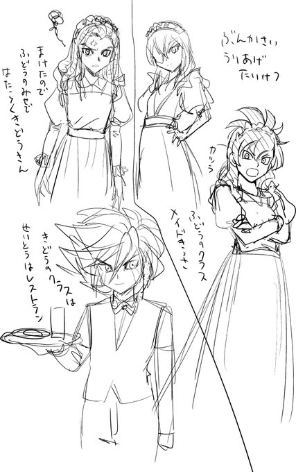 22 99 メイドの過去絵これしかない 帝国高等部で文化祭があって、クラスごとに売上げを競うことになって、鬼道さん源田くんのクラスは正統派レストラン、不動くん佐久間のクラスはメイド喫茶。佐久間メイドの美しさのおかげで不動クラスが勝利、負けた鬼道さんがメイドをさせられるというストーリーでした 22/05/10 23:59