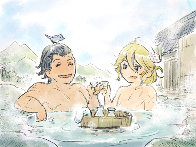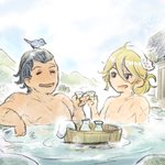 九州の温泉に浸かる剛剣と烈剣