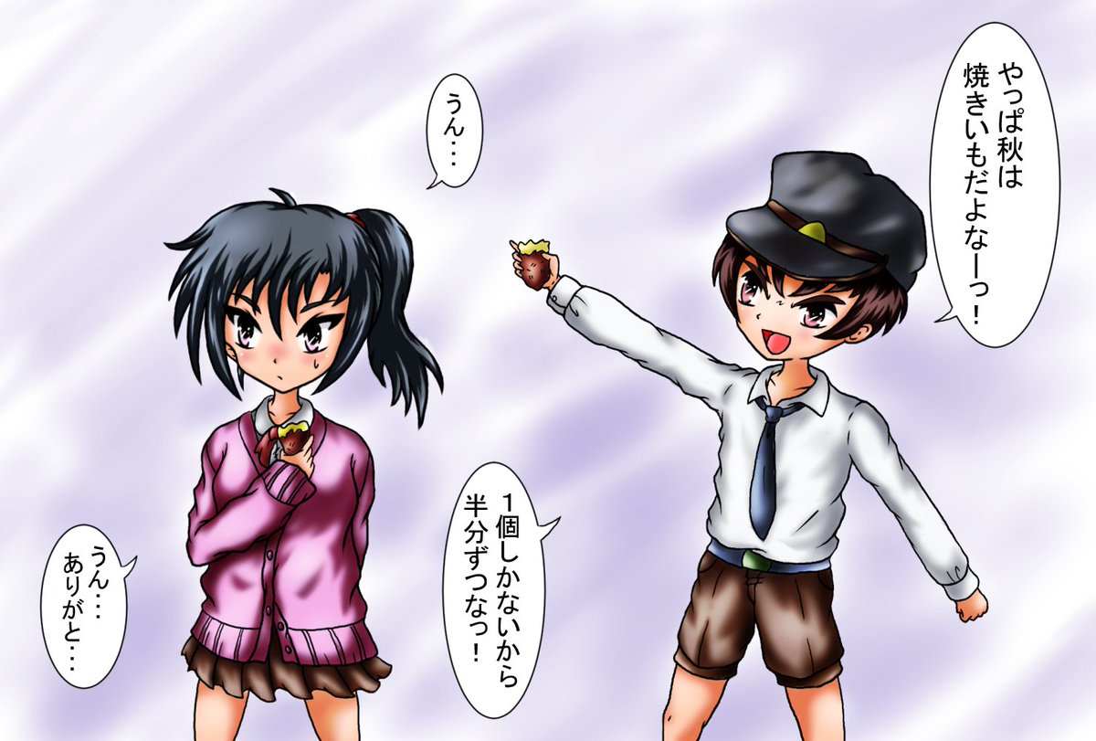 火曜日祝日でもゴミ出し以外は全く外に出ませんでした。引きこもる祝日最高っ(笑)今日はちょっと秋らしいイラストです。陸之介から秋の味覚焼きいもをもらえるなんて思ってなかった咲紀。冷静を装ってますが内心はめっちゃ喜んでます。創拡 #オリキャラ #絵描きさんと繋がりたい