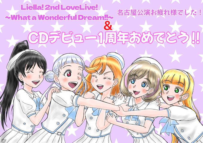 1周年の時に描いた過去絵だけど、再掲でお祝い❗️💫 今やすっかり9人のLiella!が定着したけど、2年前は「5人グループ⁉︎」と驚いたもんです☺️ 3期メンバー加入はもう決まってるんで、また来年は9人のLiella!を懐かしむのかも知れないけど、どんどん進化して行ってください‼️ #Liellaデビュー2周年