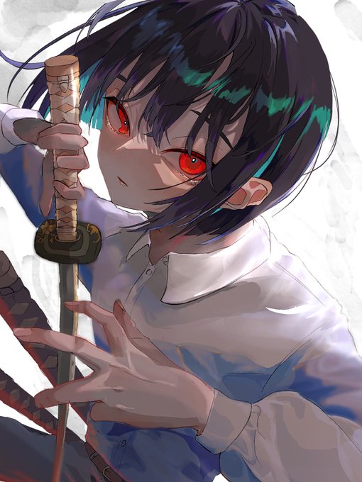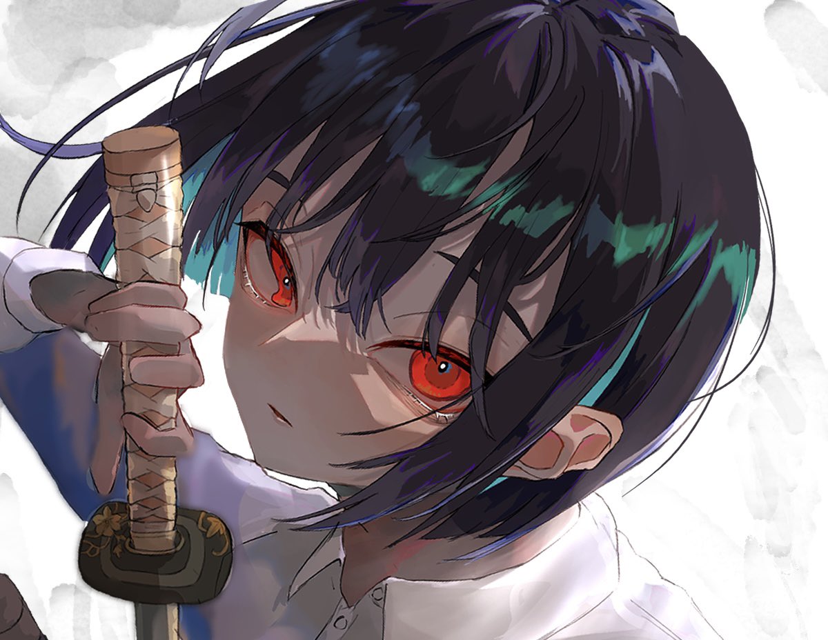 #イラスト #創作 #illustration すぐ黒髪&赤目にしてしまう〜