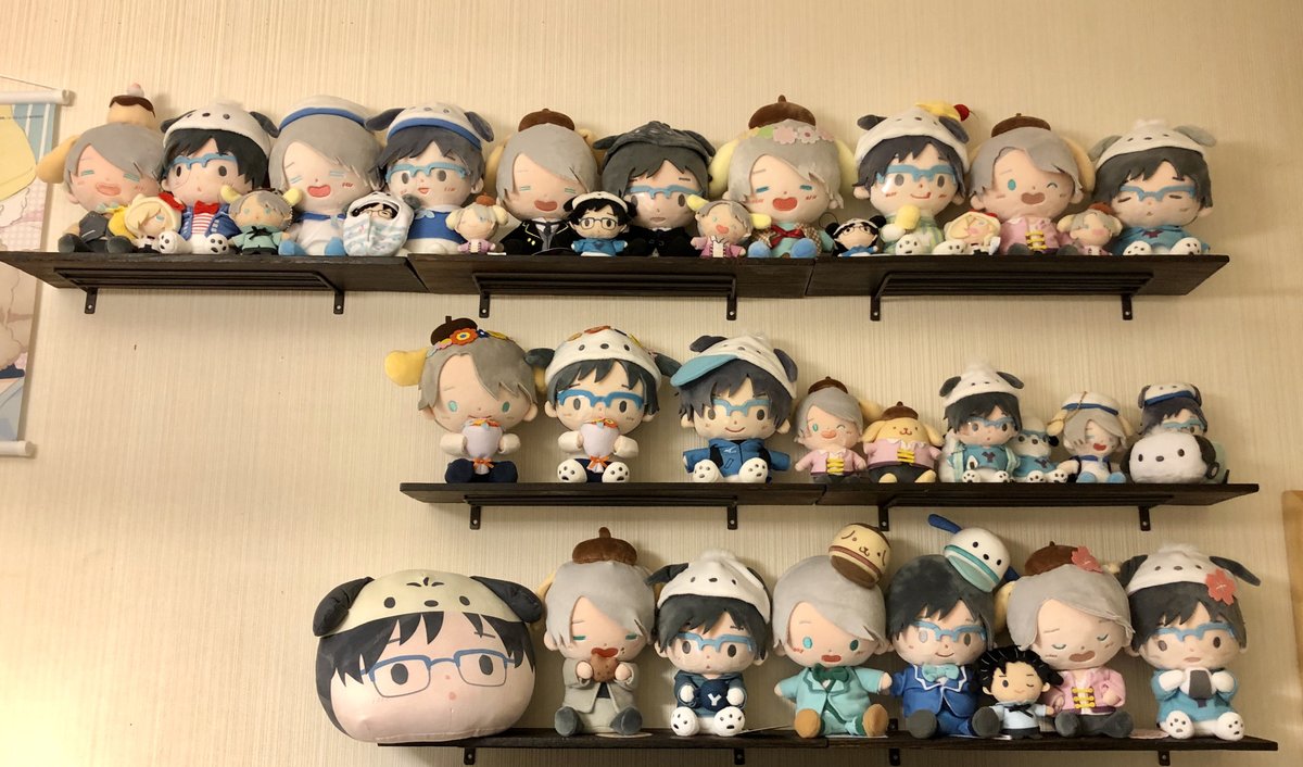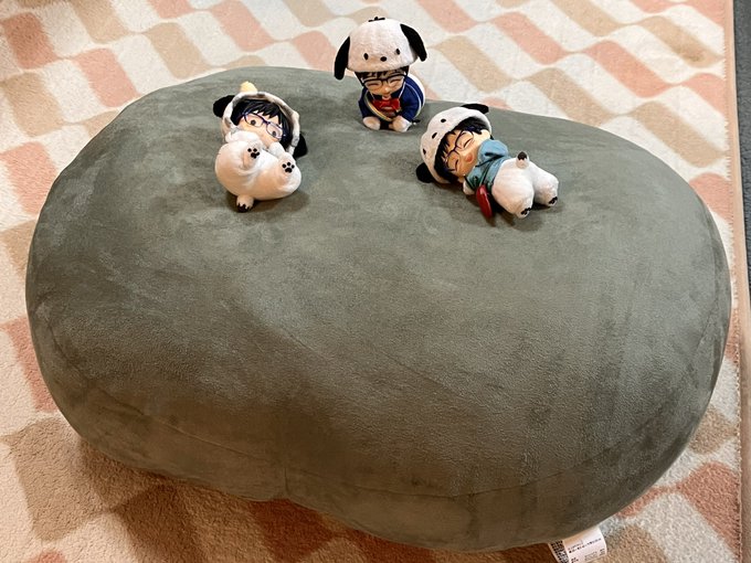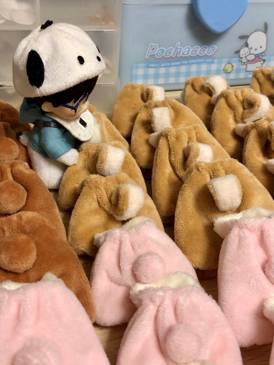 近くの中古グッズ見に行ったらこの子達がいてお迎えした!これで全種類のぽむぽちゃ達が揃ったはず🙌