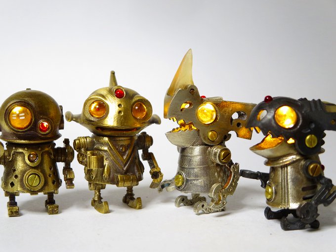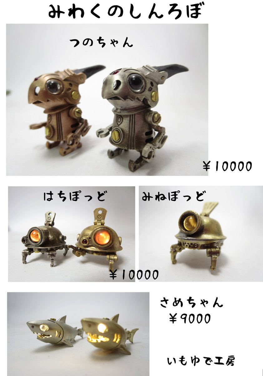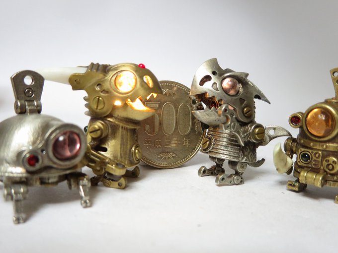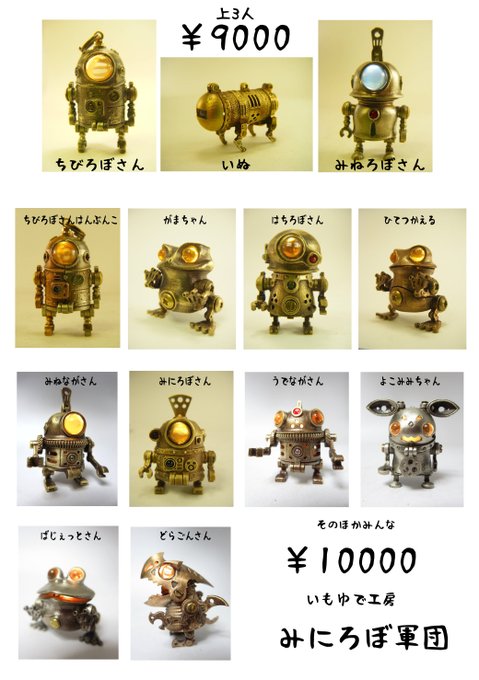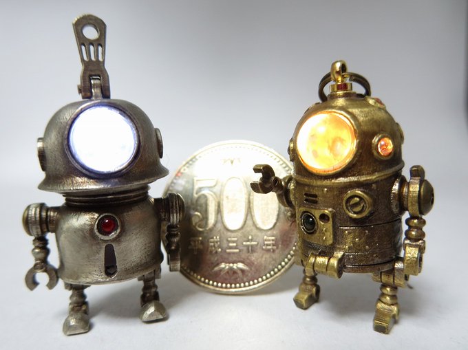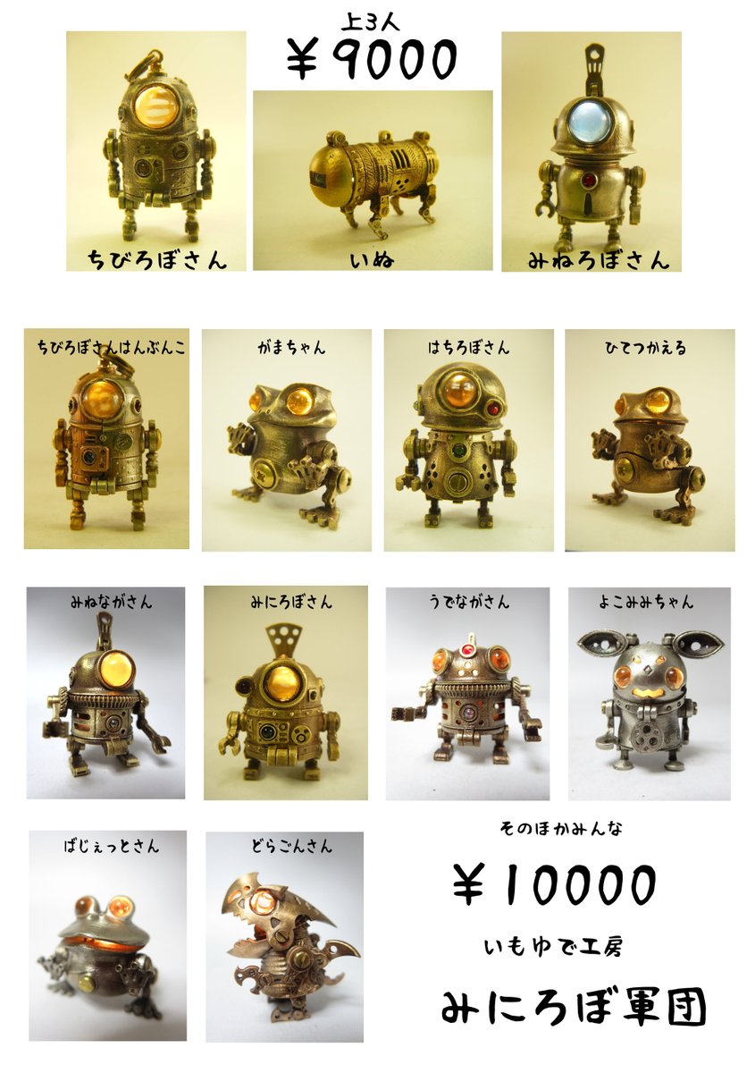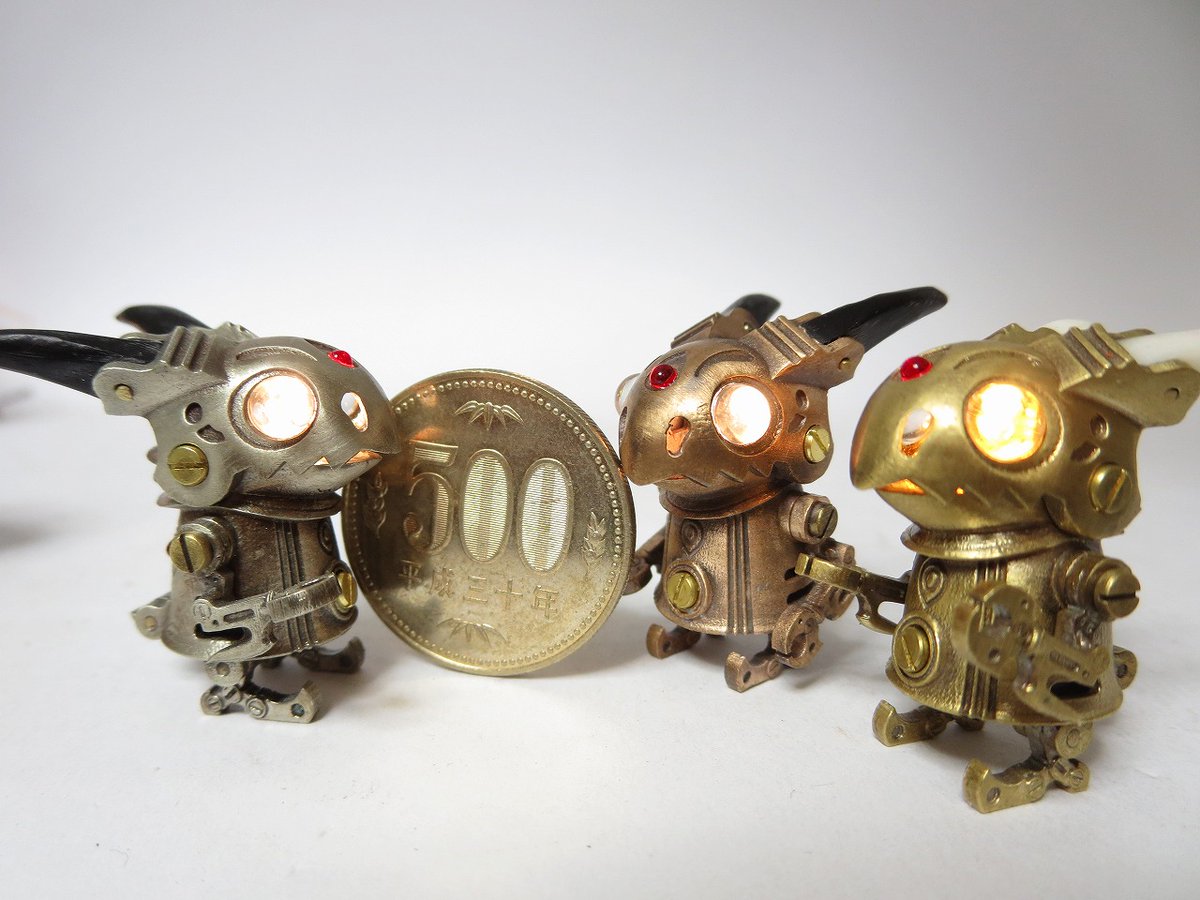 HSBいもゆで工房 コミックマーケット99に参加します。 30日 東W-40a 真鍮、洋白、銅でできた 全長3cm、LED内蔵のみにろぼ軍団 銃や戦車砲風のボルトアクション式ボールペンなど持参いたします。 #C99 #コミケ99 #コミックマーケット99