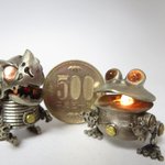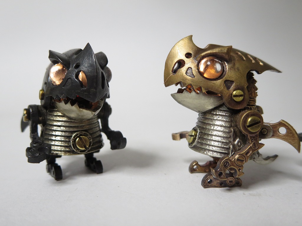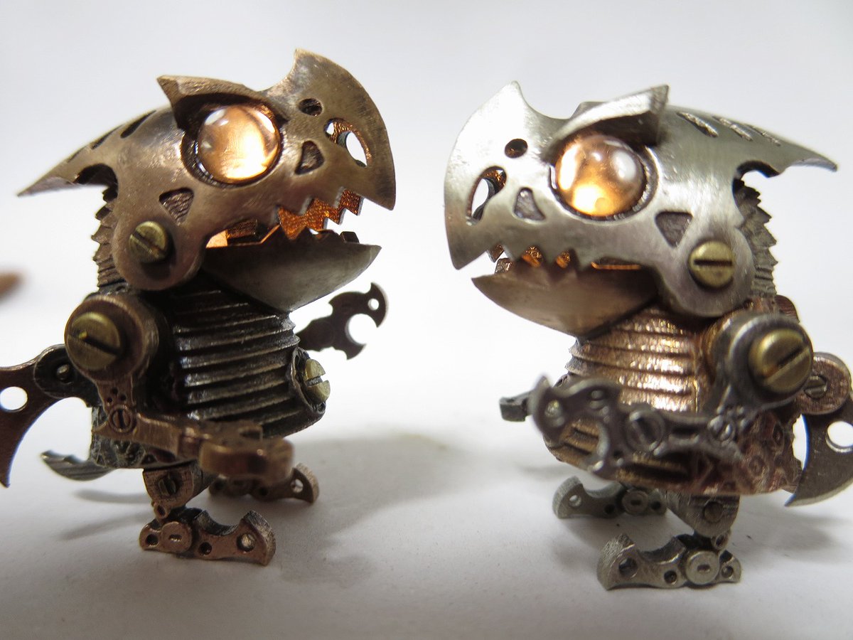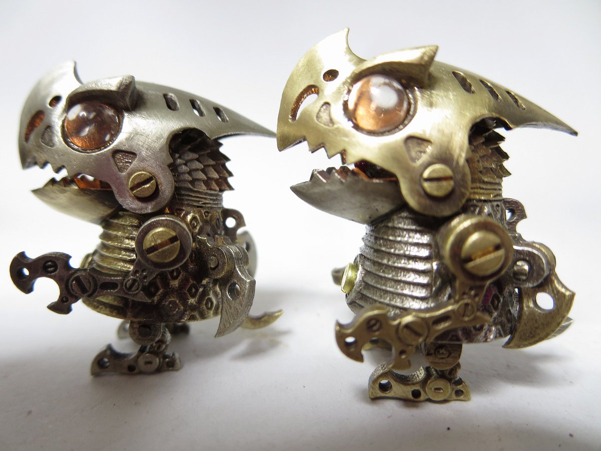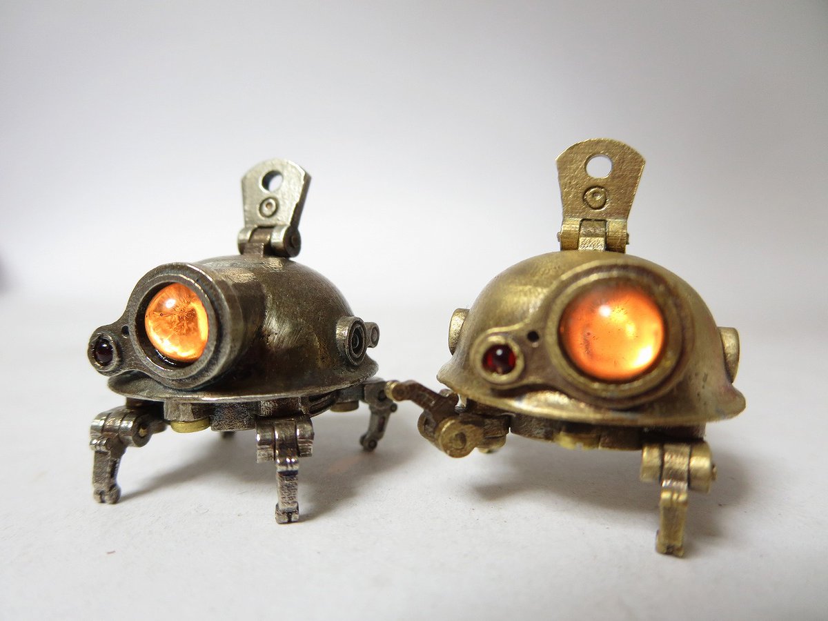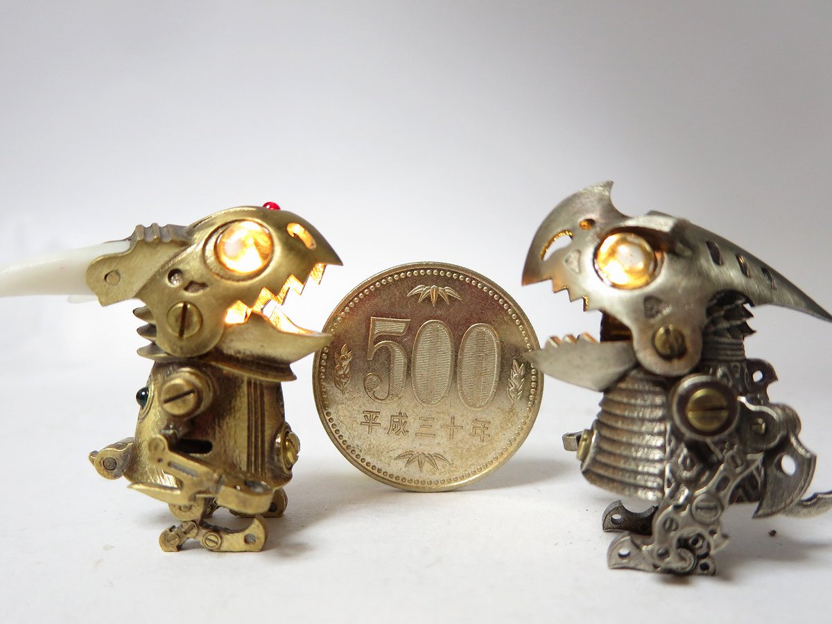 つのちゃん 真鍮、洋白、銅の3タイプに素材組み合わせタイプもおります。 角の素材は水牛角(黒)、牛骨(白)、ココボロ(赤)、パロサント(緑)など。 角の形がちがうのもちょこちょこ混ざってます SR626電池2個使用。 交換可 #ワンフェス2023夏 #WF2023S #WF2023夏