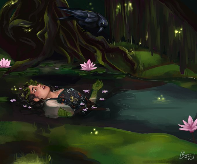 "Bogs of Barovia", inspired by Ophelia by John Everett Millais. Wanted to spin this piece with my Curse of Strahd, hexblood warlock, Ingrid. #CurseofStrahd #DnDArt