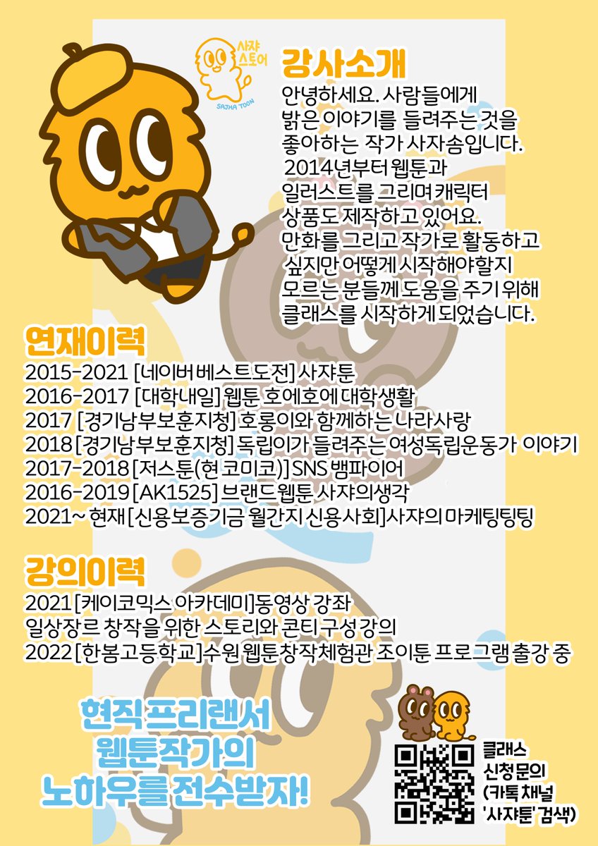 [호데데 웹툰 클래스 1기]22년 7월 호데데 웹툰클래스를 수강하실 분을 모집합니다! 자세한 사항과 상담은 아래의 링크를 통해 알아보실 수 있습니다. 잘 부탁드립니다! pf.kakao.com/_xbbDld/950661…