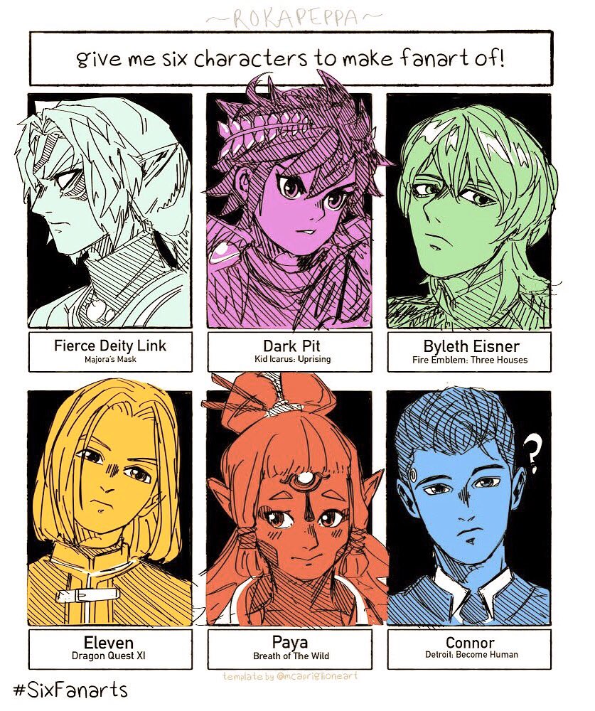 Hey hey hey! I finally rocked up late to the party! special thanks to all my followers on @botw.moments for these ideas~~ - #fiercedietylink #darkpit #byleth #eleven #paya #connor #sixfanarts #sixfanartschallenge #6fanarts