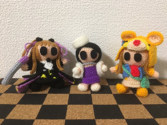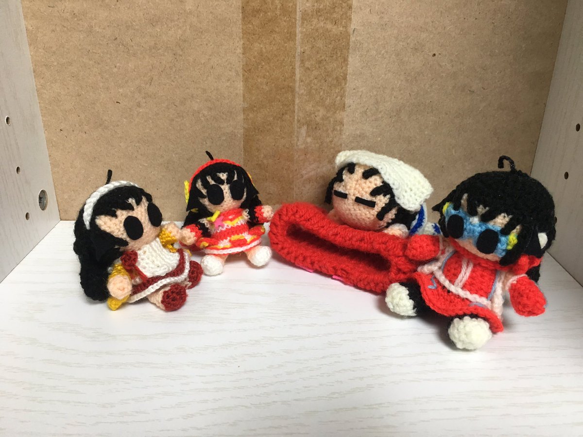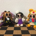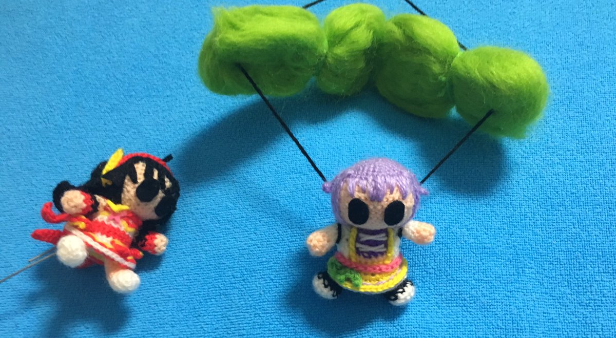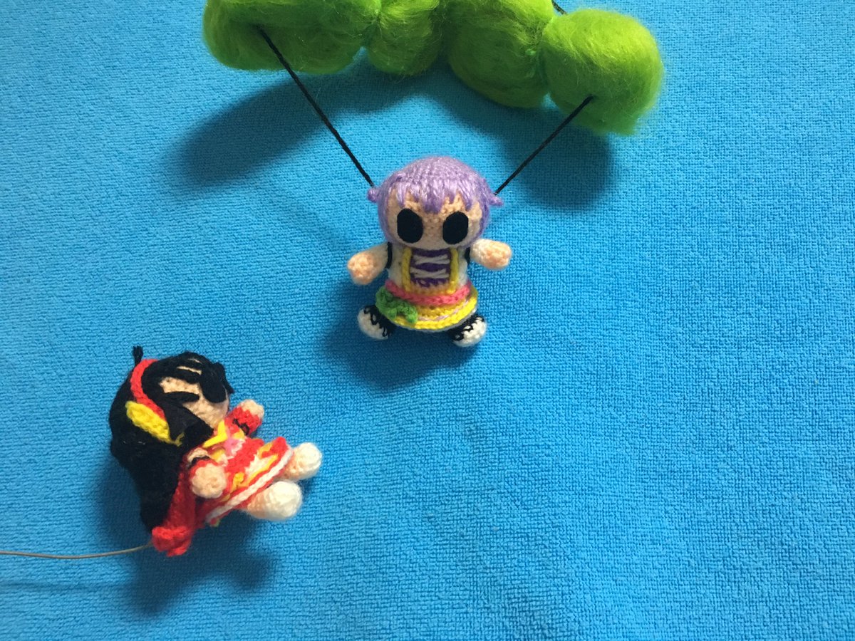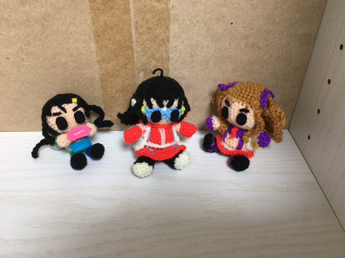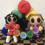 レイナサマお誕生日おめでとう あみぐるみ小劇場でお祝い レイナサマバズーカを使ってお祝いをしようとする南条と紗南 でも南条のレイナサマバズーカが暴発してしまった そんな一場面 #アイマス手芸部 #小関麗奈誕生祭2022