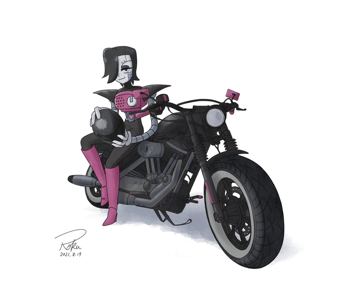 2 8 #今までで作画カロリーMAXの作品上げようぜ 1枚目で頑張ってバイク描いたのにほぼ黒塗りになってしまったので2枚目描いたというバイクの日のイラスト 23/03/07 17:49