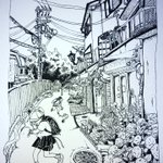 #kuretake_inktober2021 #inktober2021 #DAY26 #繋ぐ #ZIG #縄跳び #下校 #看板 #烏天狗