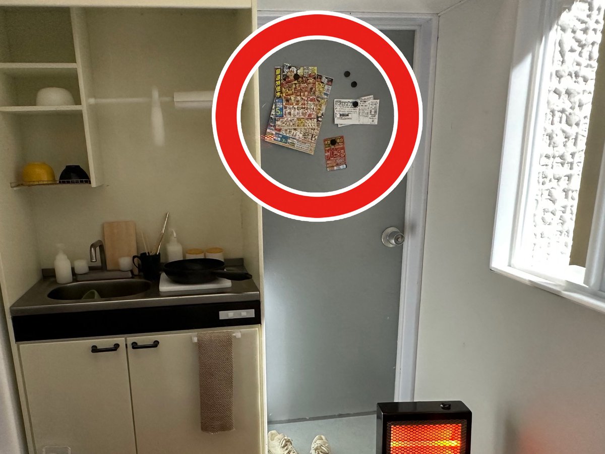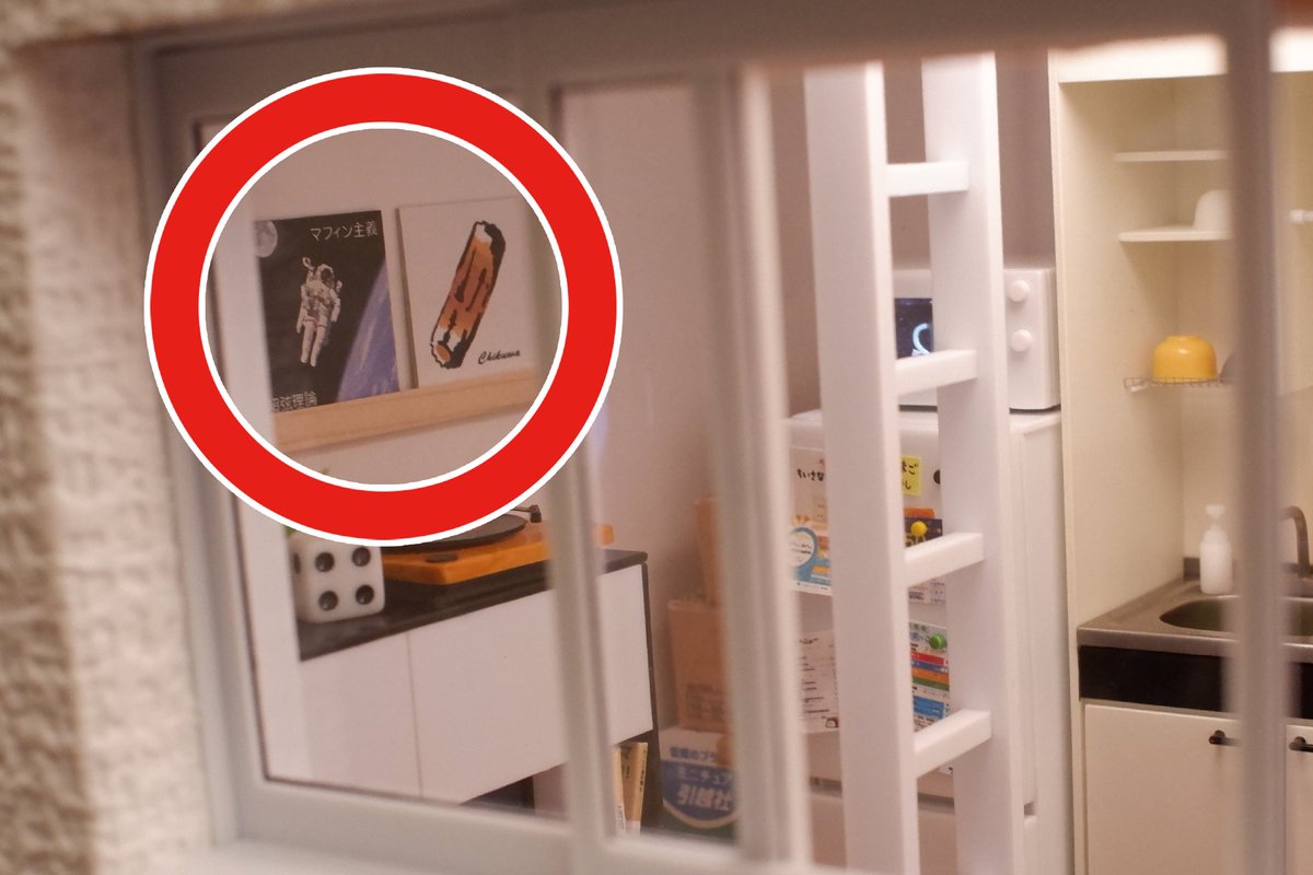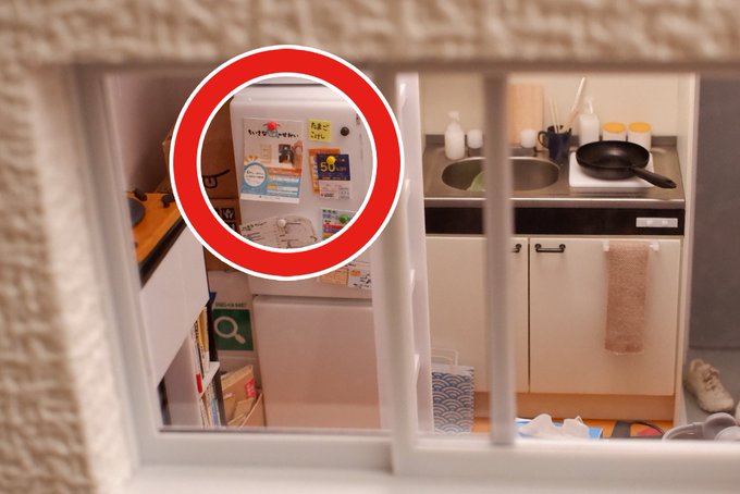 「こびとの角部屋」の小ネタ紹介! ①冷蔵庫に貼ってあるのは…? ②分かる人には分かるレコードジャケットのパロディ ③玄関あるある。色々貼っちゃいますよね〜 ④テレビ画面に映っているのはうちのハムスター。上のテロップも何かおかしいような… 他にもあるので探してみてくださいね〜! twitter.com/rokubunnnoichi…