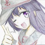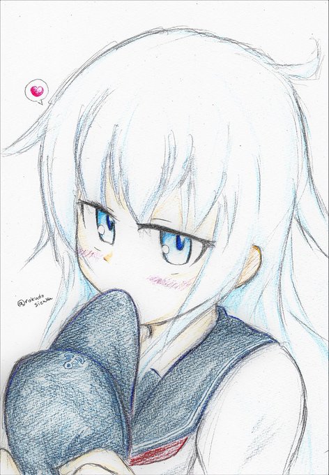 響 「Спасибо…………///」 「進水日おめでとう」って言ったら帽子脱いで待っている響 #艦これ版深夜の真剣お絵描き60分一本勝負 #艦これ版真剣お絵描き60分一本勝負_20190616 #響生誕祭2019