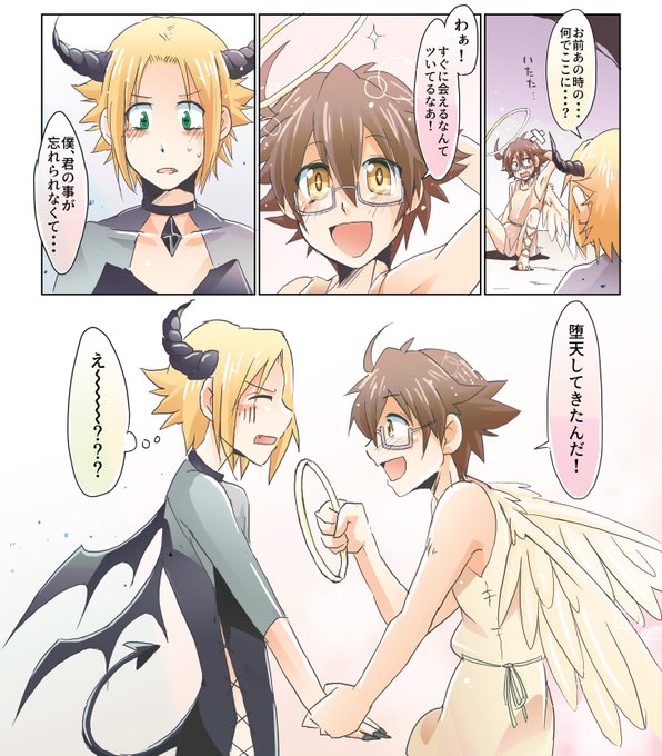 ココさんのめちゃ可愛くて大好きな👼😈5377設定お借りして、三次創作?ファンアート?描かせて頂きました🙏✨衣装とかはちょっと違うかもです😇美味しすぎる設定ありがとうございます🙏🙏🙏 twitter.com/coco_nata_de/s…