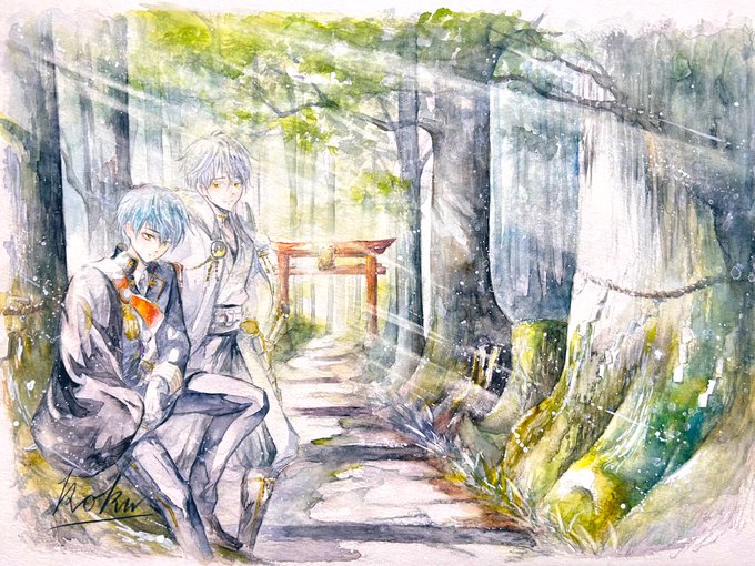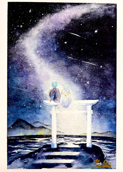 28 77 星降る夜🌟⭐️✨鶴丸といち兄 透明水彩イラストは素敵✨ 23/02/10 20:18