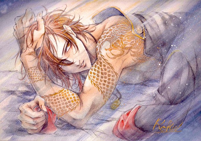 7 12 #自分の代表作だと思う絵を一枚だけ選んでみよう これかな〜やっぱ顔が良く描けてる!倶利伽羅龍🐉も上手く描けてて大満足 twitter.com/i/web/status/1… 23/06/08 23:38