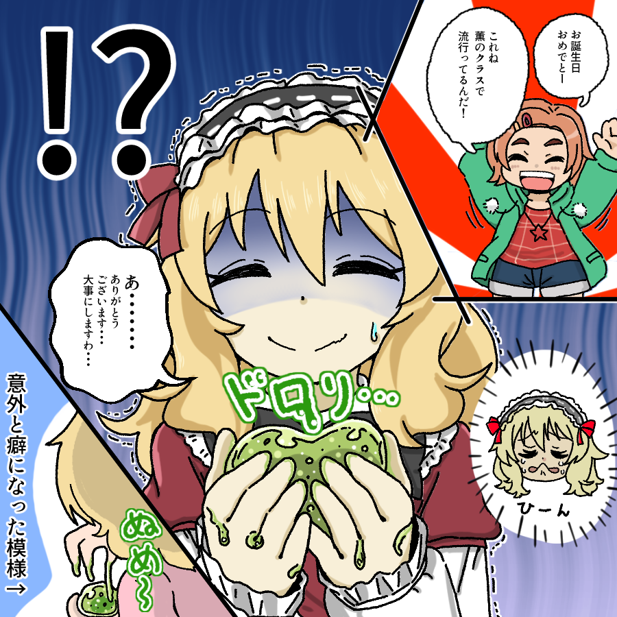 🎉🎉桃華ちゃまはっぴーばーすでー🎉🎉 薫ちゃんからのプレゼントの正体とは… 実際、スライムって小学生に流行ってたりしてるのだろうか??? #櫻井桃華誕生祭2022 #櫻井桃華生誕祭2022