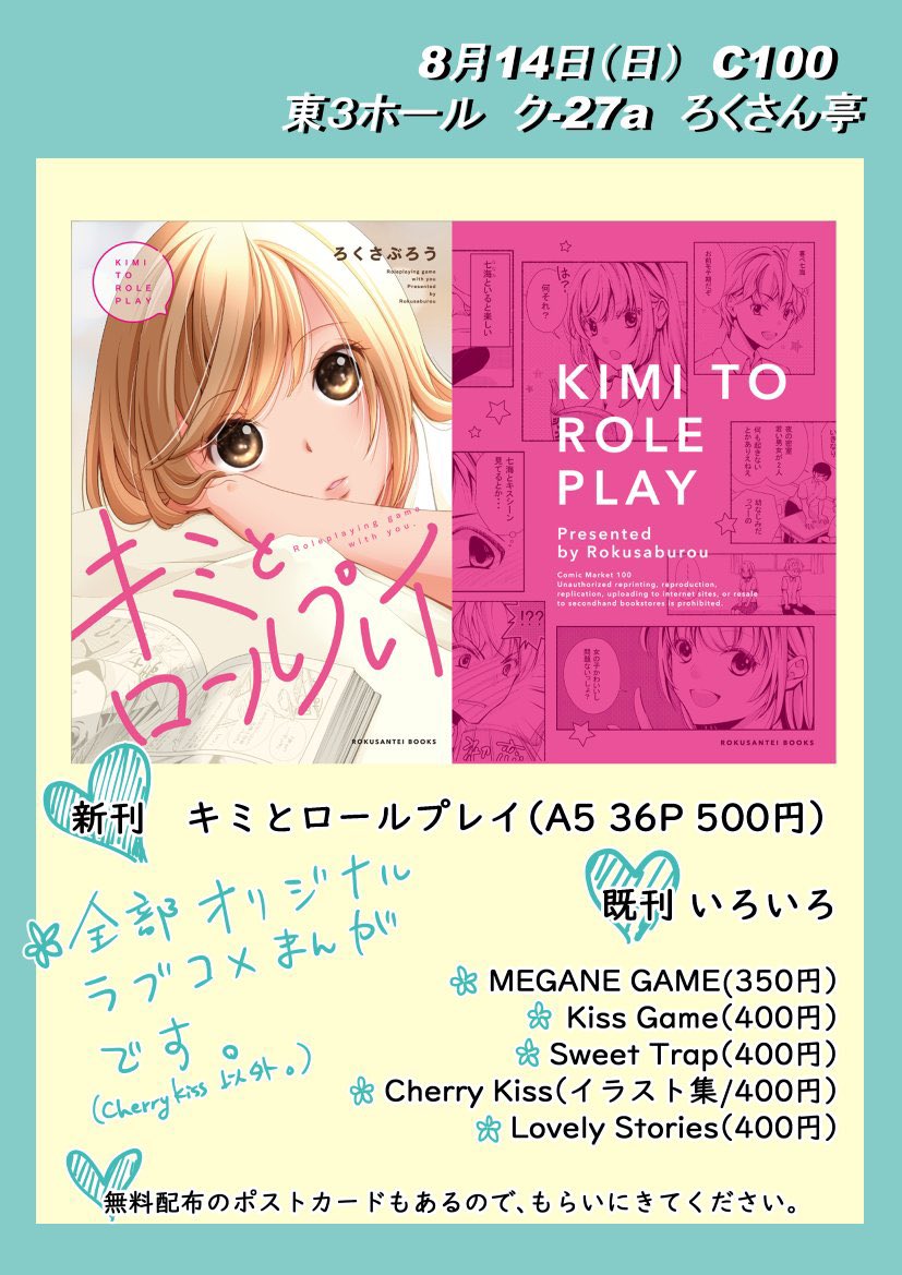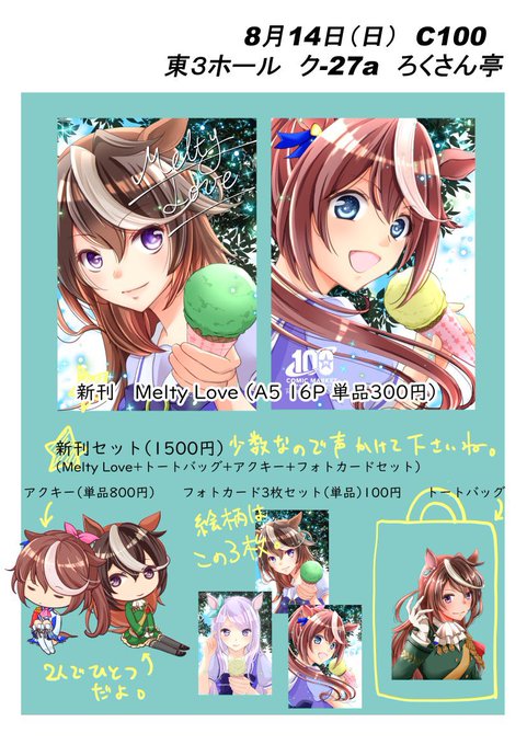 冬コミのおしながきです。 12/30(土)西1ホール ひ26b ろくさん亭 ウマ娘オールキャラスペースで参加します。 ナギさんと合同企画でおまけのフォトカードプレゼントもあります。 よろしくお願いします! #ウマ娘 #C101おしながき #C101