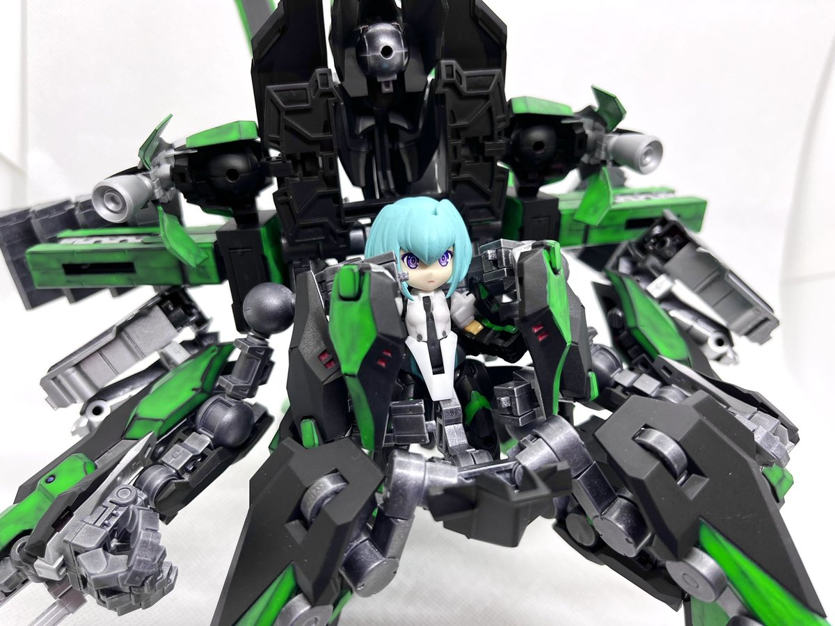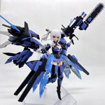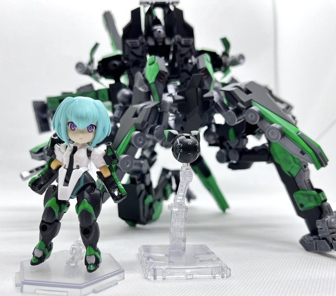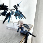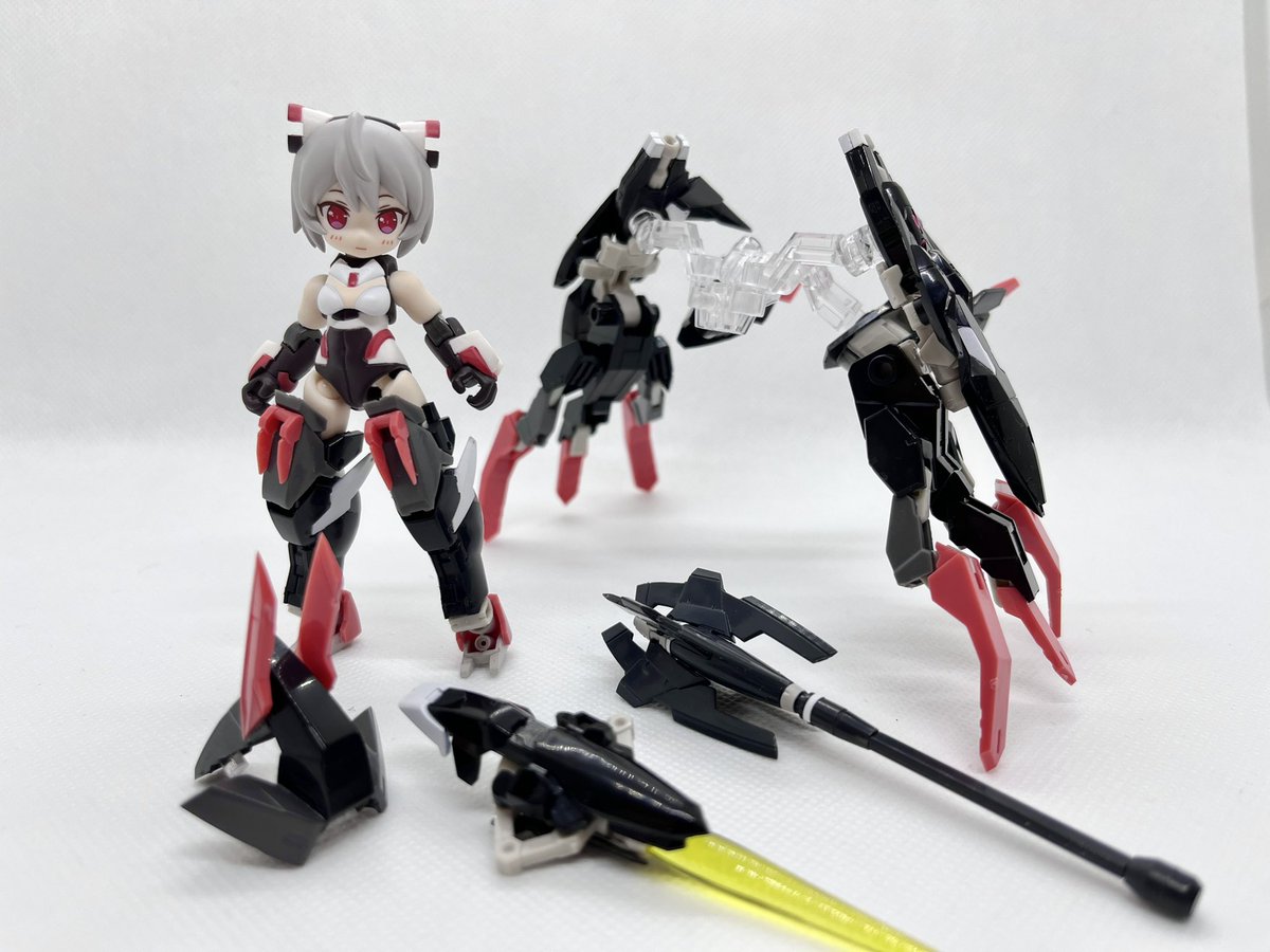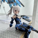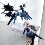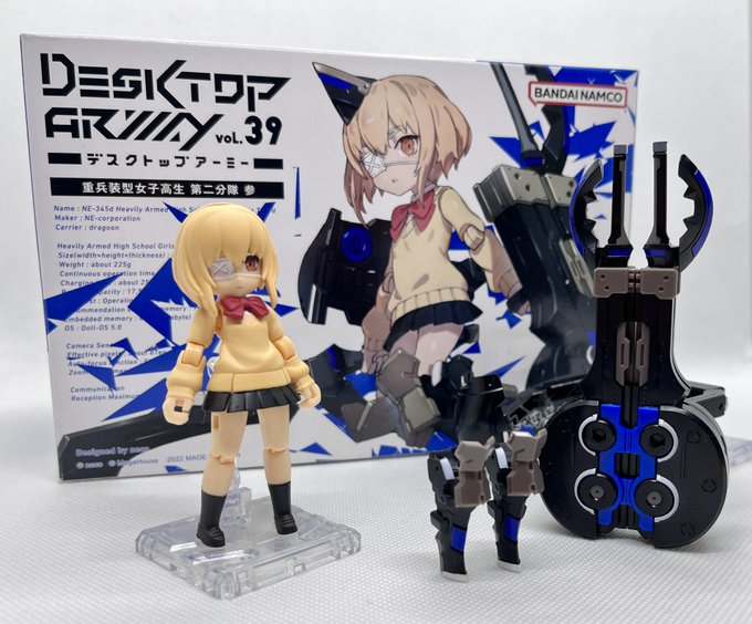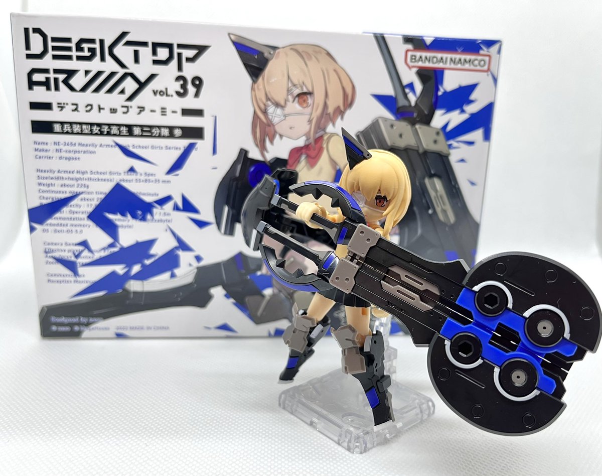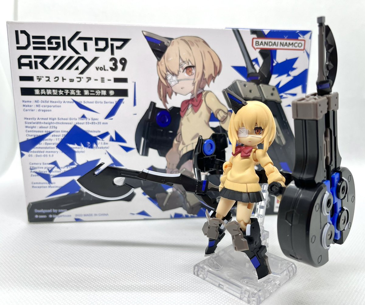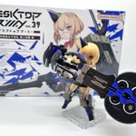 デスクトップアーミー 重兵装型女子高生 参です。女子高生素体と角が生えたヘッドパーツに脚部武装と戦斧タイプの武装になります。独特な形状ですが大型の武装としてとても格好良いですね。それと眠り顔パーツも可愛いです(๑˃̵ᴗ˂̵)。。 #デスクトップアーミー