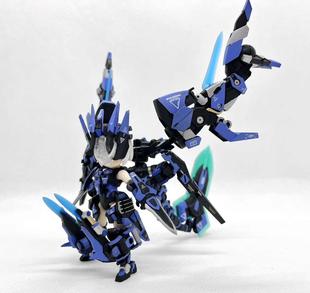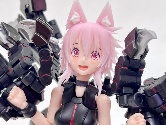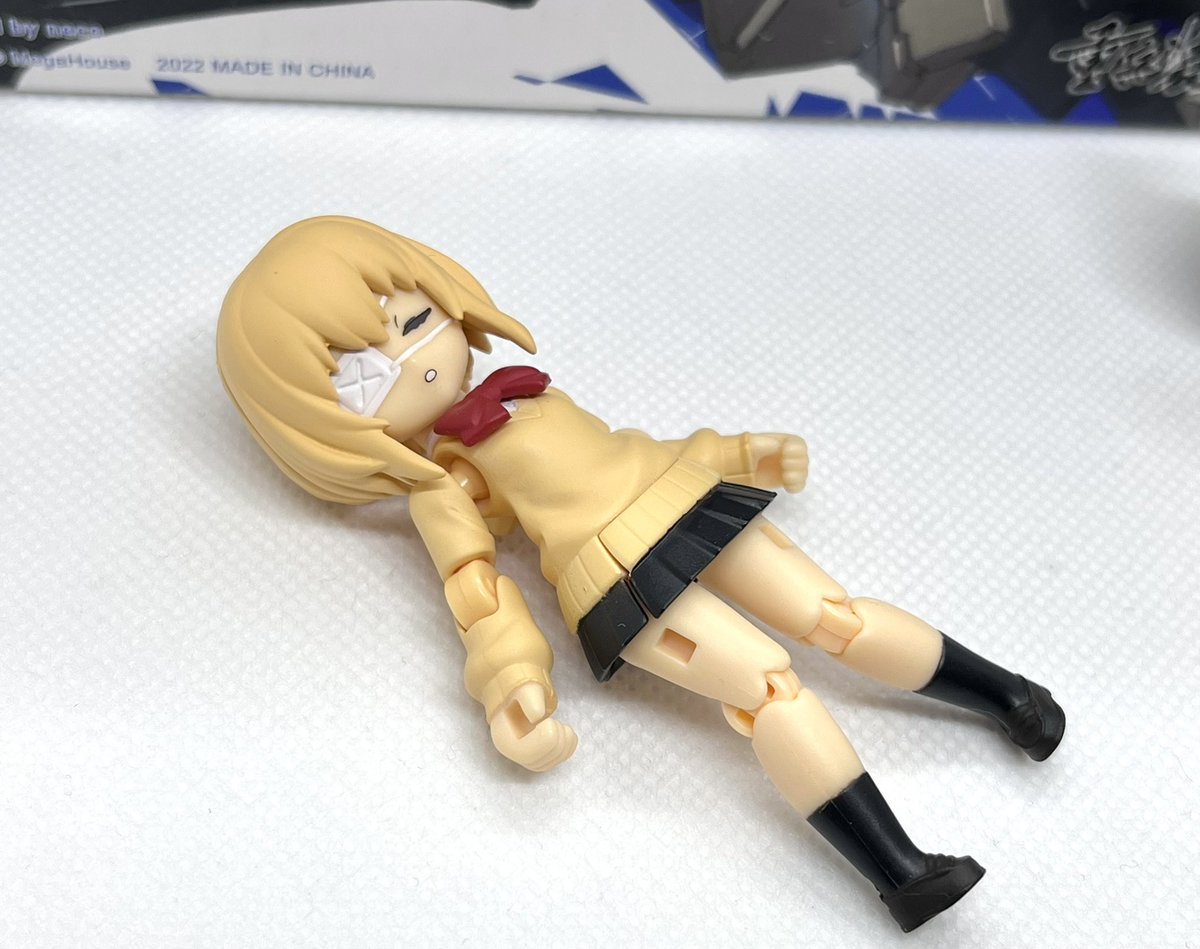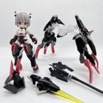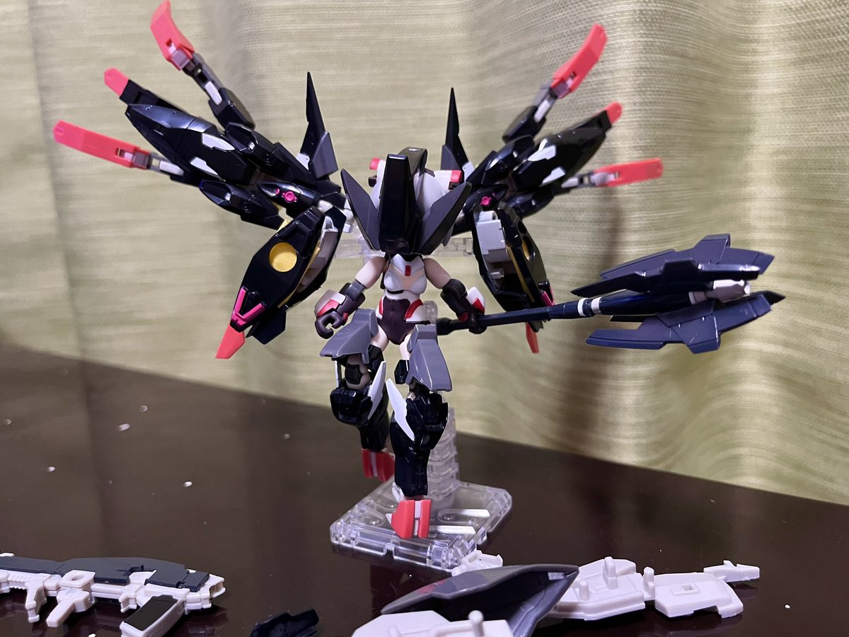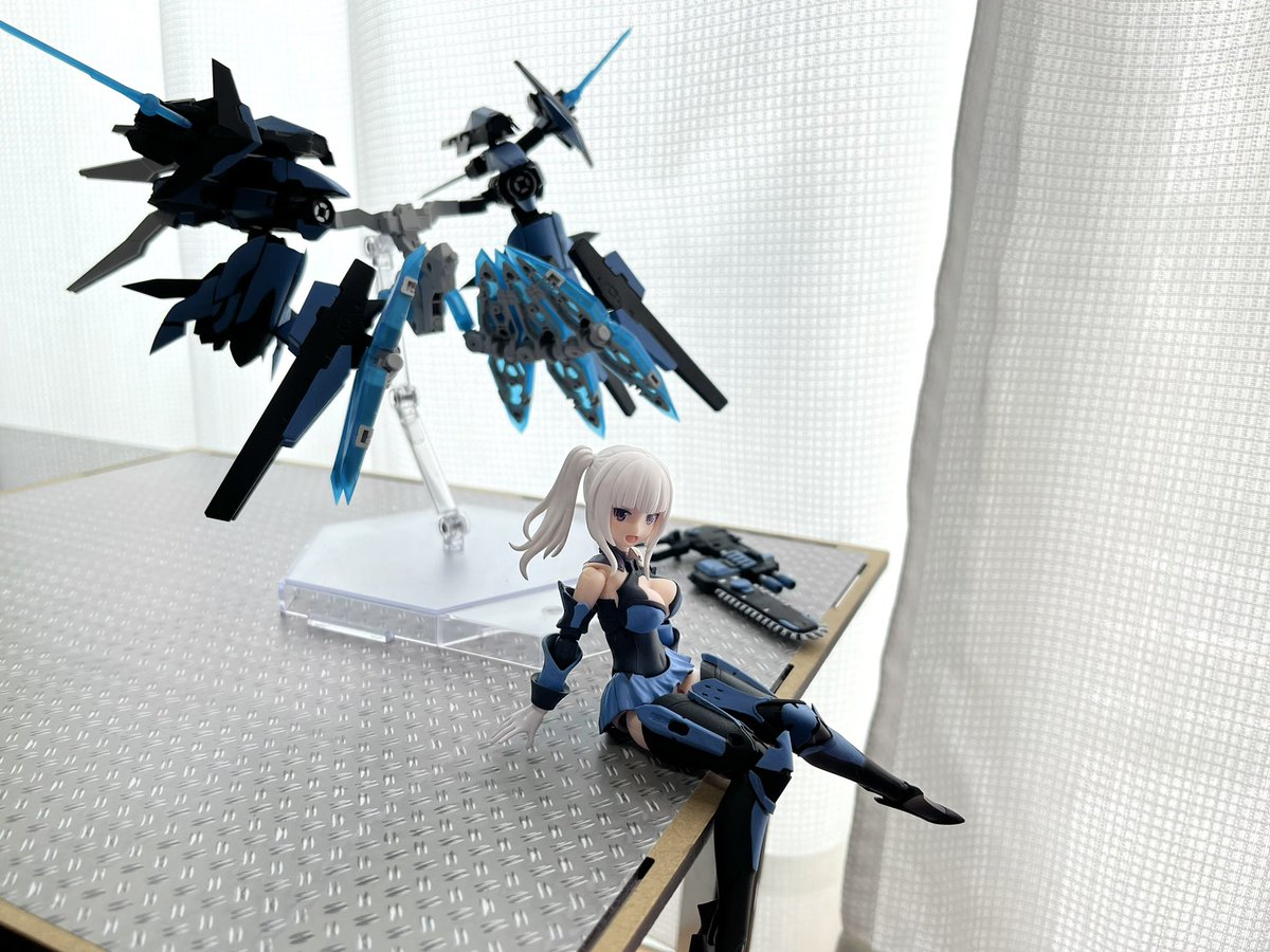 デスクトップアーミー 重兵装型女子高生 参です。女子高生素体と角が生えたヘッドパーツに脚部武装と戦斧タイプの武装になります。独特な形状ですが大型の武装としてとても格好良いですね。それと眠り顔パーツも可愛いです(๑˃̵ᴗ˂̵)。。 #デスクトップアーミー