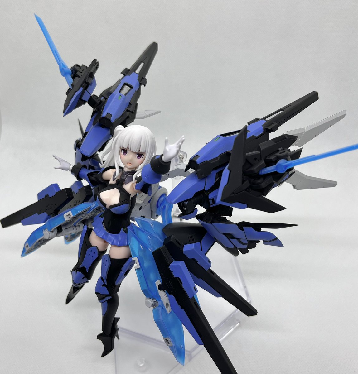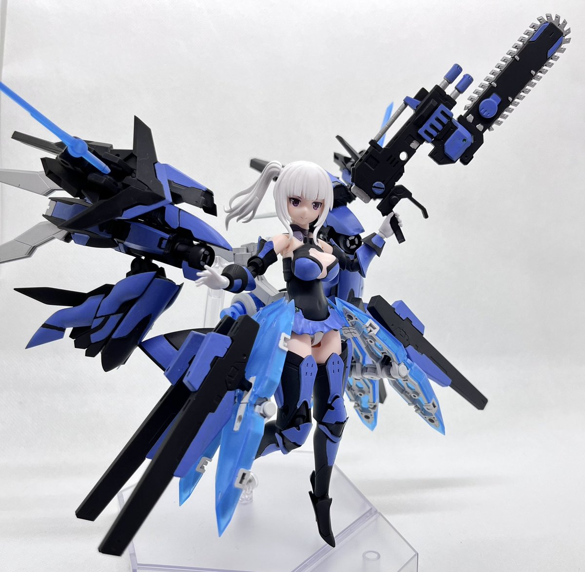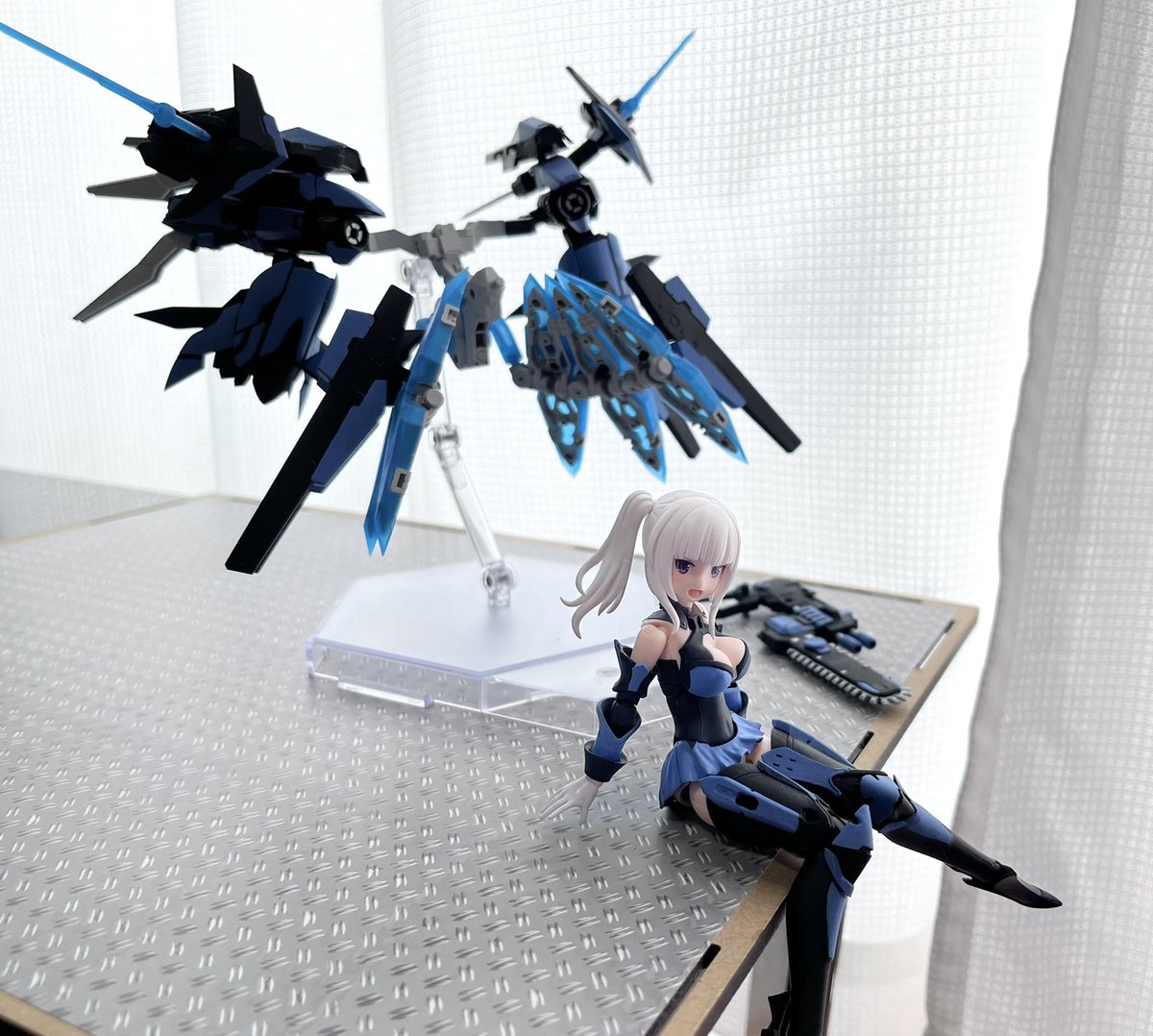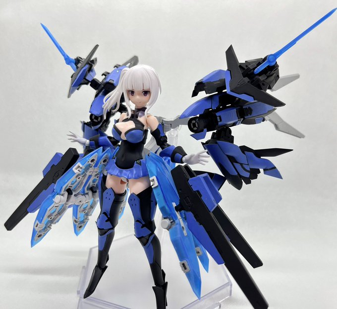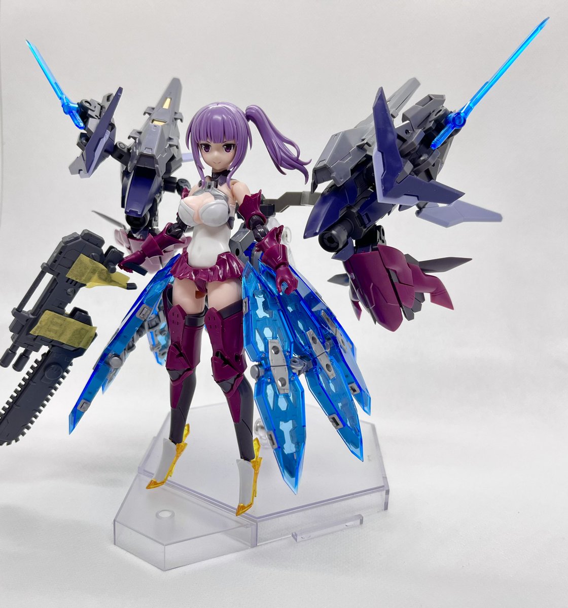 デスクトップアーミー 重兵装型女子高生 参です。女子高生素体と角が生えたヘッドパーツに脚部武装と戦斧タイプの武装になります。独特な形状ですが大型の武装としてとても格好良いですね。それと眠り顔パーツも可愛いです(๑˃̵ᴗ˂̵)。。 #デスクトップアーミー