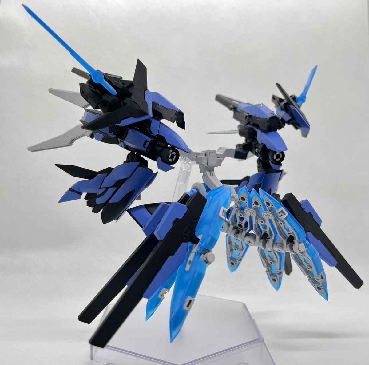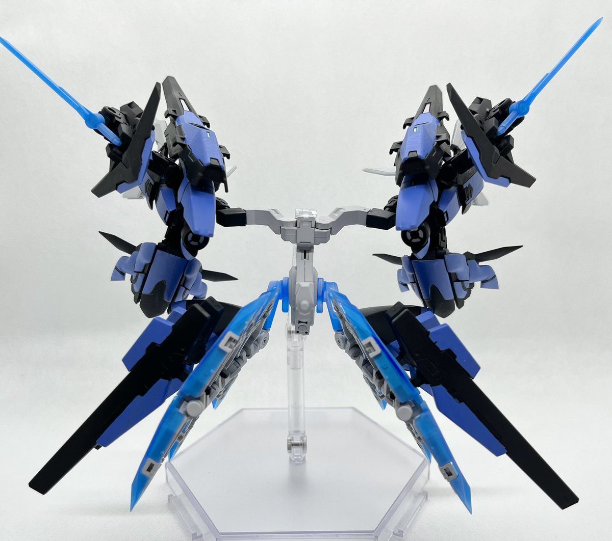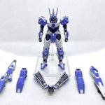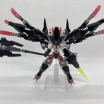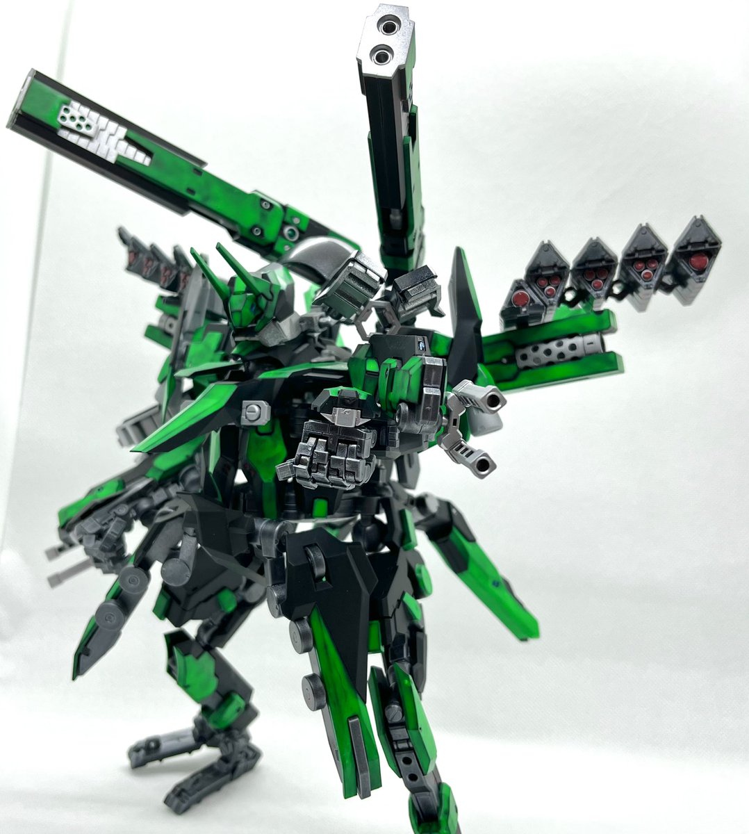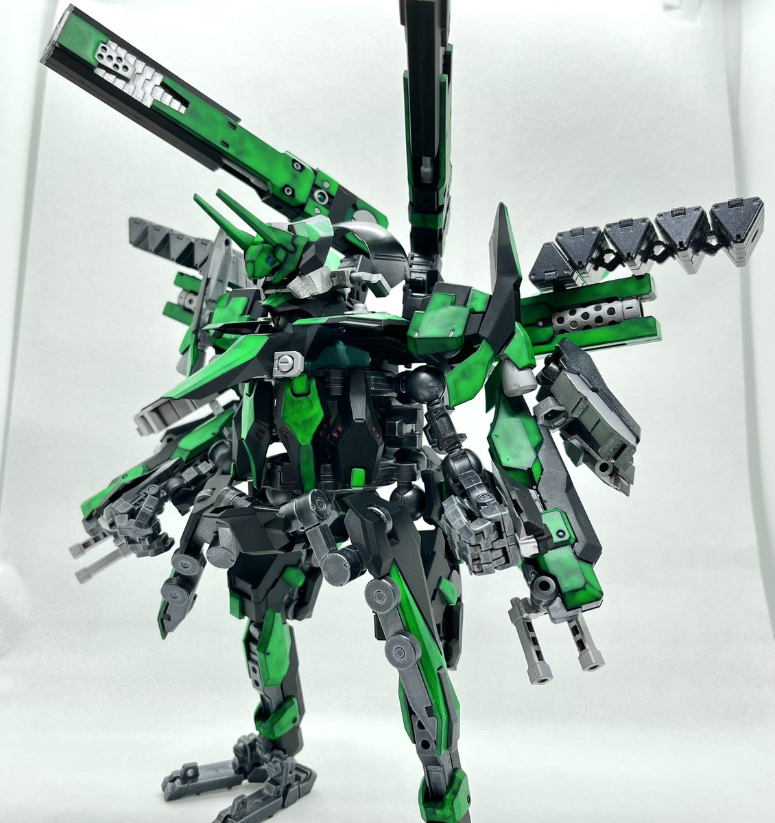Twitterコンテストは戦闘部門にこれでいこうと思います。グリンブルスティのパーツのみでのカスタムで、鬼の様な見た目のヘッドパーツ、両肩に翼の様に可動する手、ブレードやハンマーや脚部アーマーはそのままですがだいぶ戦闘力の高そうな機体になりました。あと塗装です、、 #デスクトップアーミー