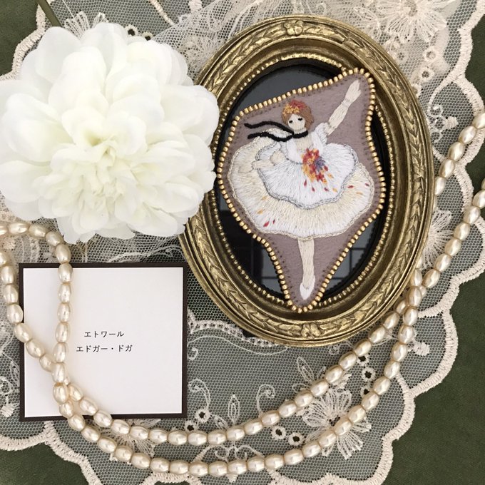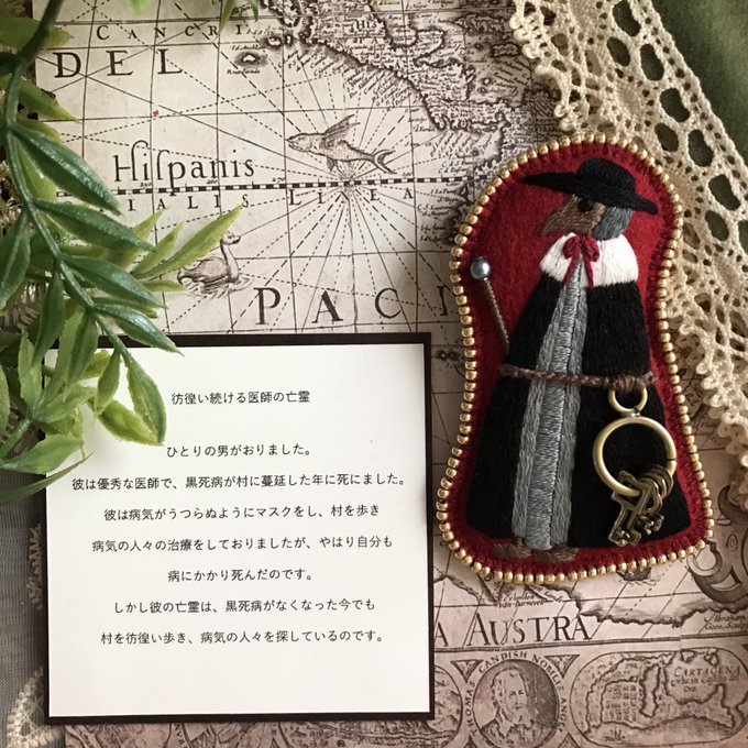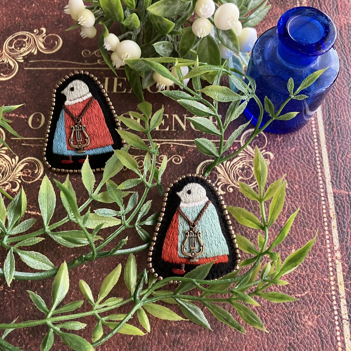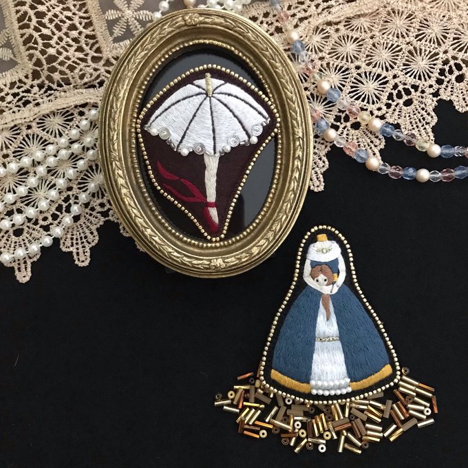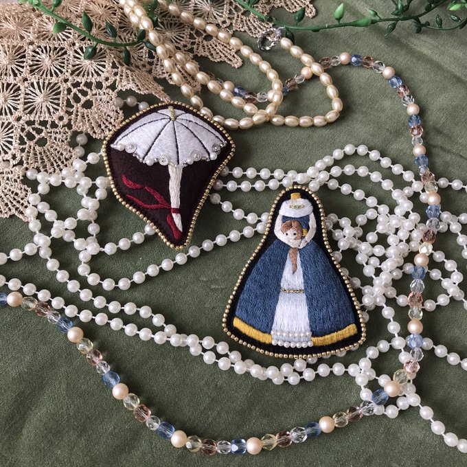ムムリク舎です。「感情と情景のある刺繍」をテーマに怖くて美しくて不思議なブローチを製作しています。 ゴーストや絵画モチーフなど。それぞれの空気感や感情を大切にしています。minneのギャラリーもぜひご覧ください。 minne.com/@mumurik-sya @Lupopo_cafe さま 9周年おめでとうございます🌟