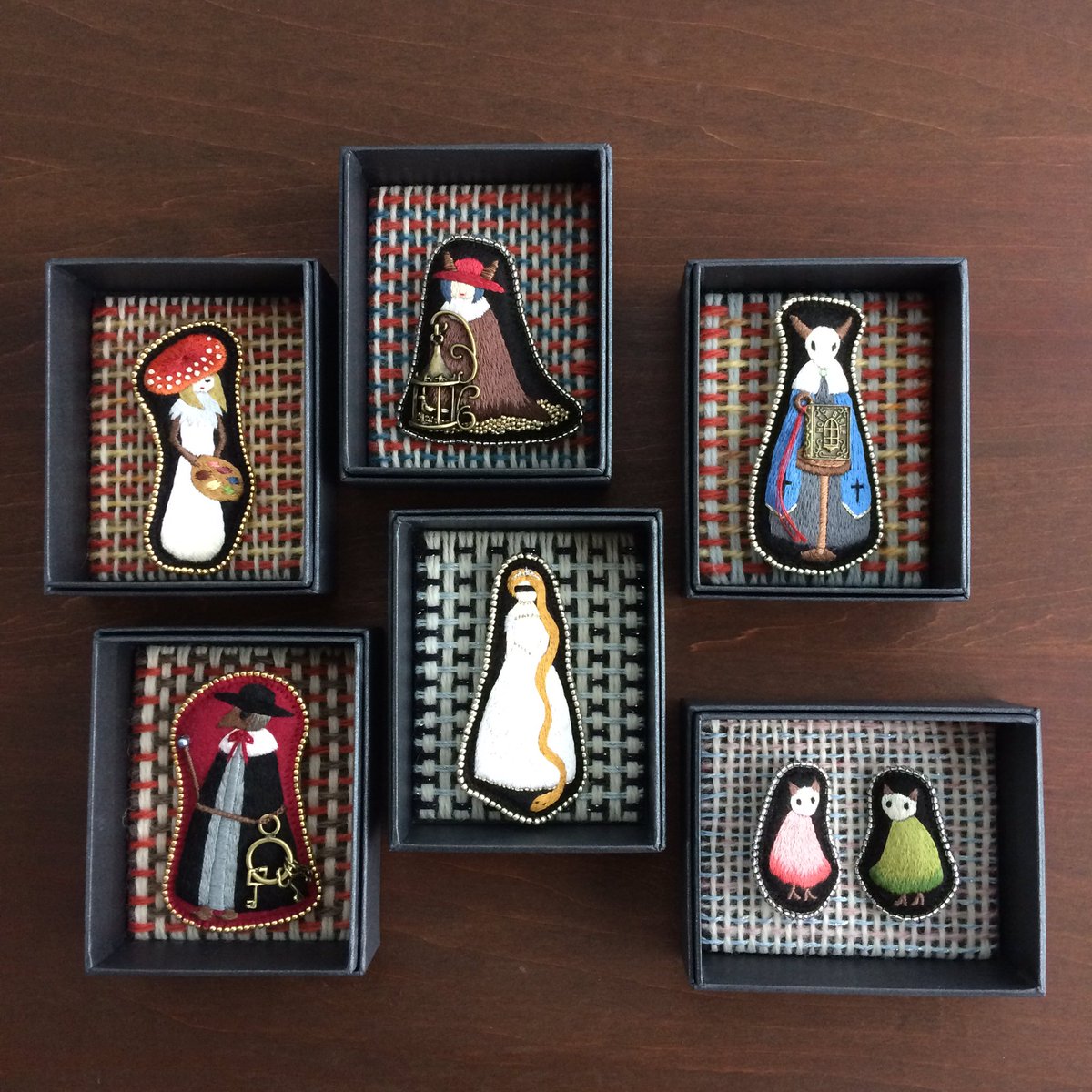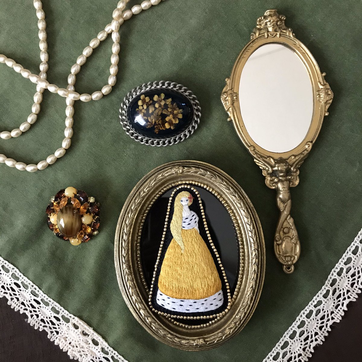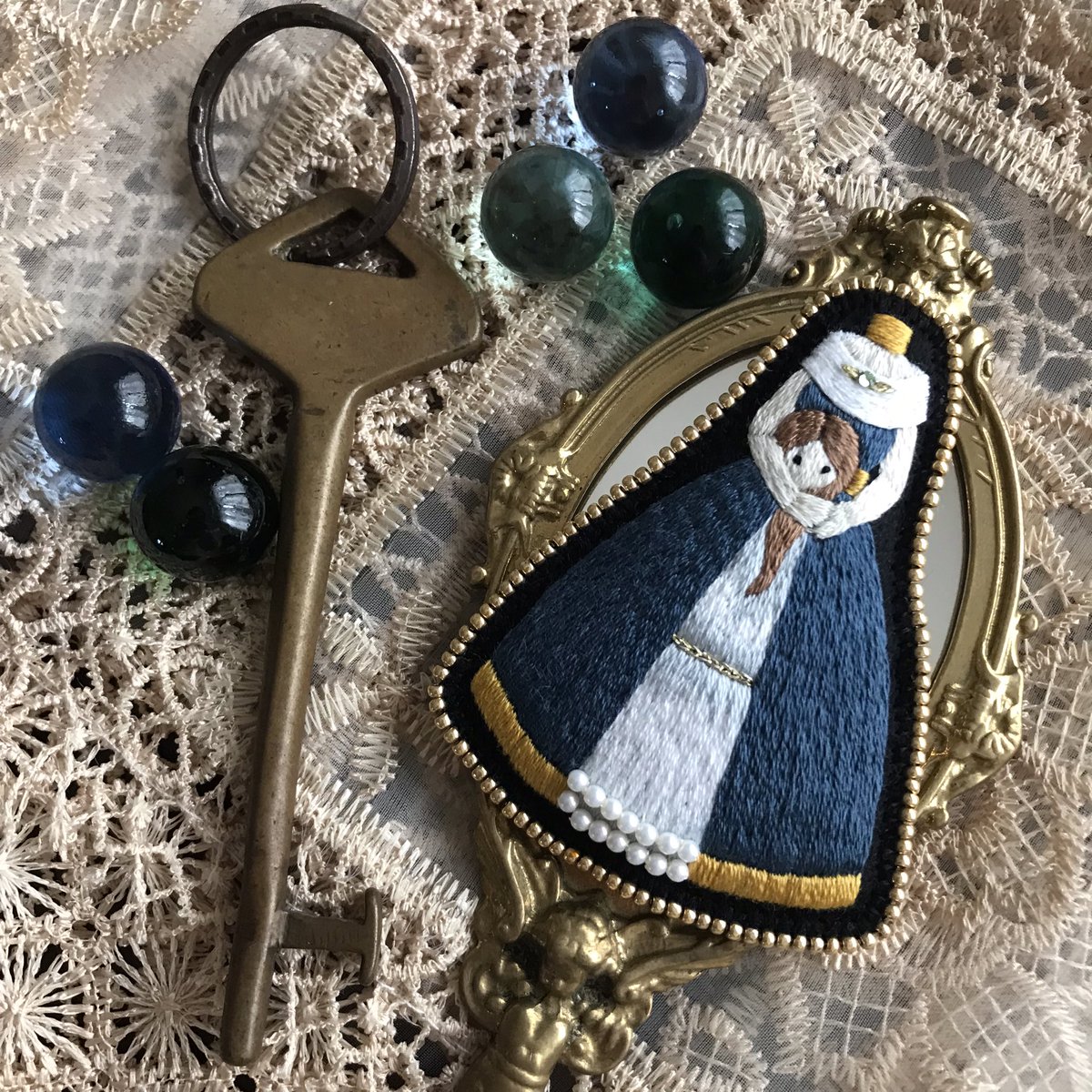 ムムリク舎です。「感情と情景のある刺繍」をテーマに怖くて美しくて不思議なブローチを製作しています。 ゴーストや絵画モチーフなど。それぞれの空気感や感情を大切にしています。minneのギャラリーもぜひご覧ください。 minne.com/@mumurik-sya @Lupopo_cafe さま 9周年おめでとうございます🌟