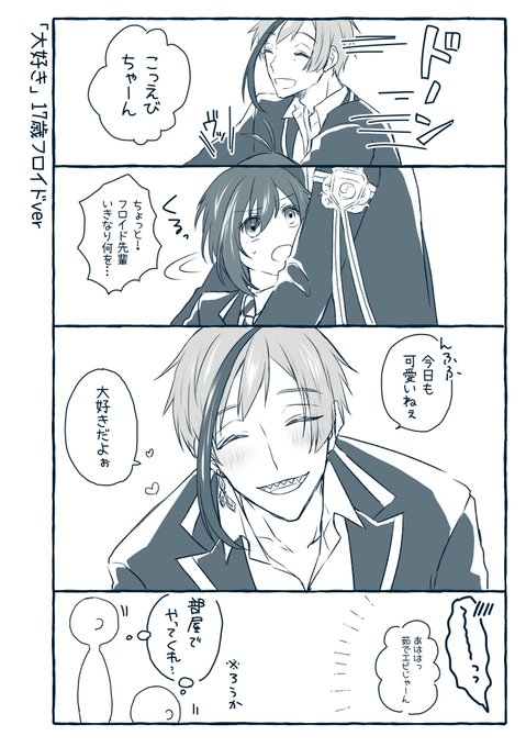 24 383 合鍵ネタフロ監🗝 この後訂正されても🦐ちゃん部屋通うし番になる🦈 ⚠️監顔あり #twstプラス #twst_NL 23/03/11 19:50
