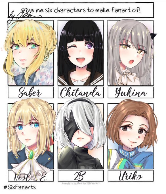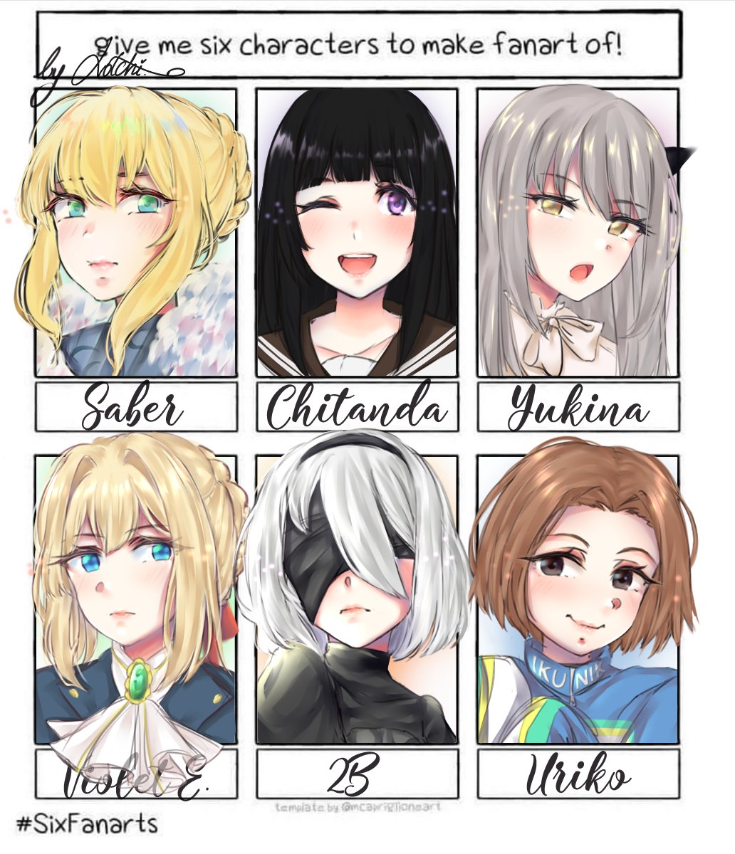 I finished this challenge, this was really interesting and so funny to do it! 🌸 I couldn't make all your suggestions, sorry 😔 #SixFanarts #SixFanartsChallenge
