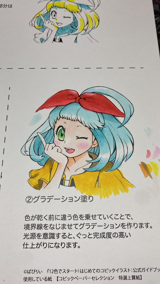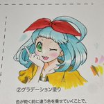 0 7 コピックでグラデーション塗りをしたぞ。白黒も可愛いとは思ったけど色があると更に可愛い。瞳はゆめんママが好きそうな緑にした。ってのは冗談で緑が一本だけしかなくて目に止まったから #イラスト 22/08/18 00:00
