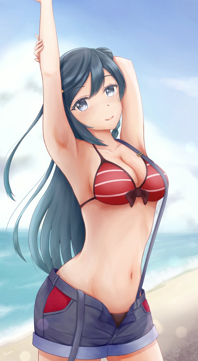 へそ出しはたくさん描いてたけど水着は3枚でした #夏が終わりそうだし今年描いた水着絵を貼ろう