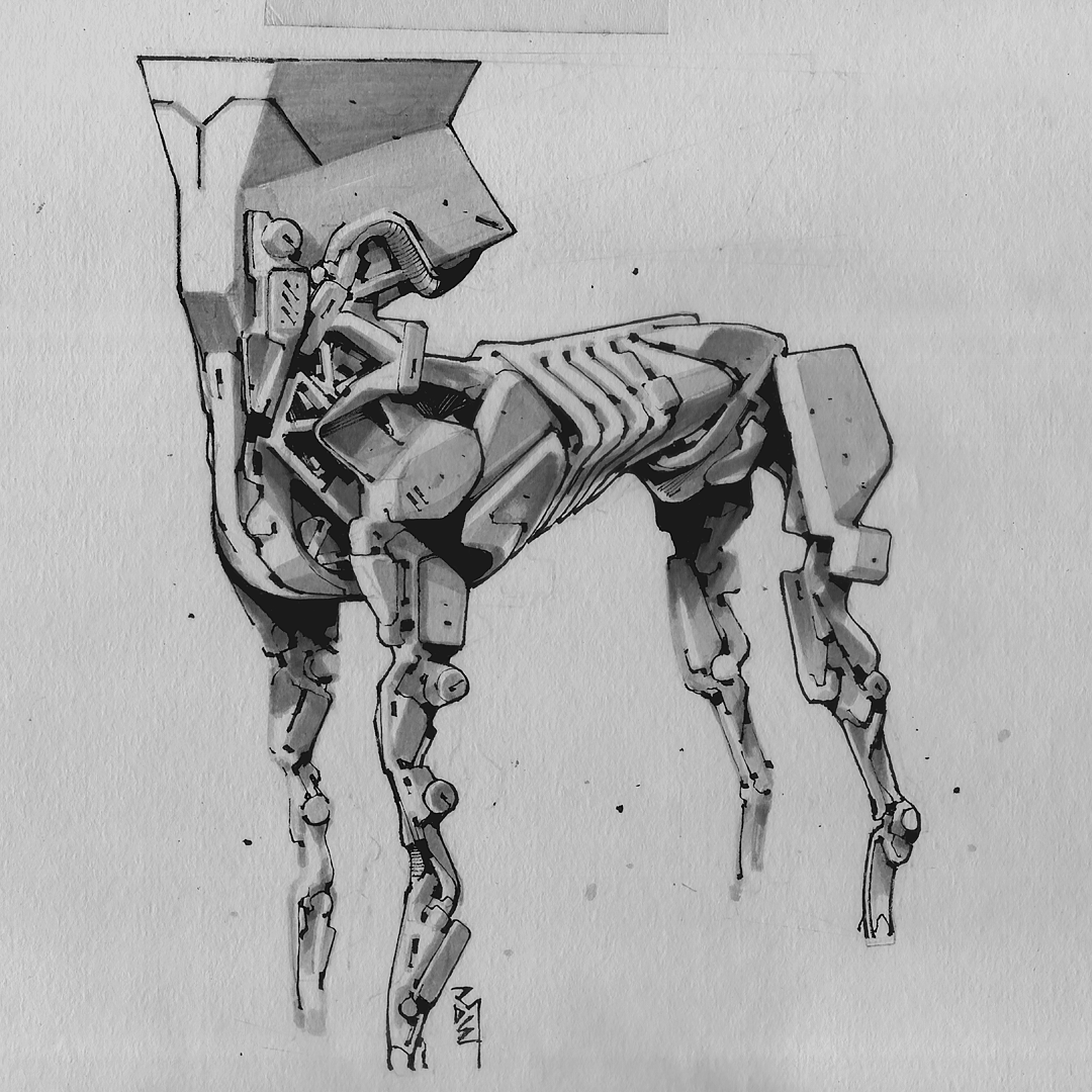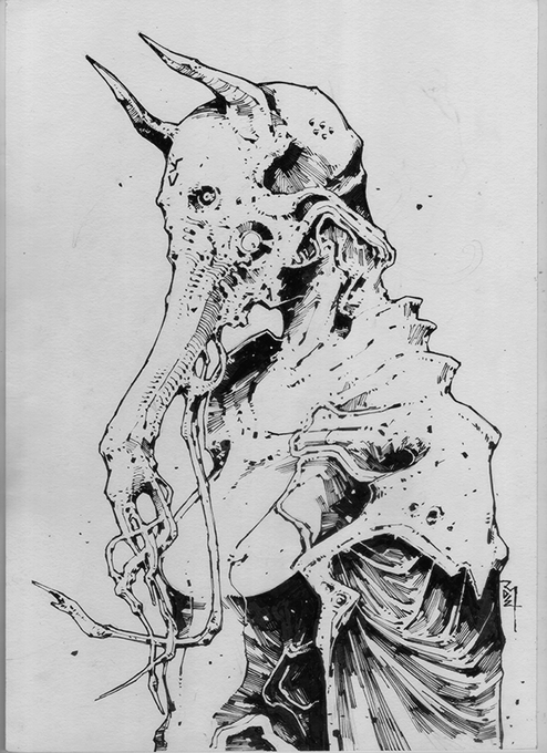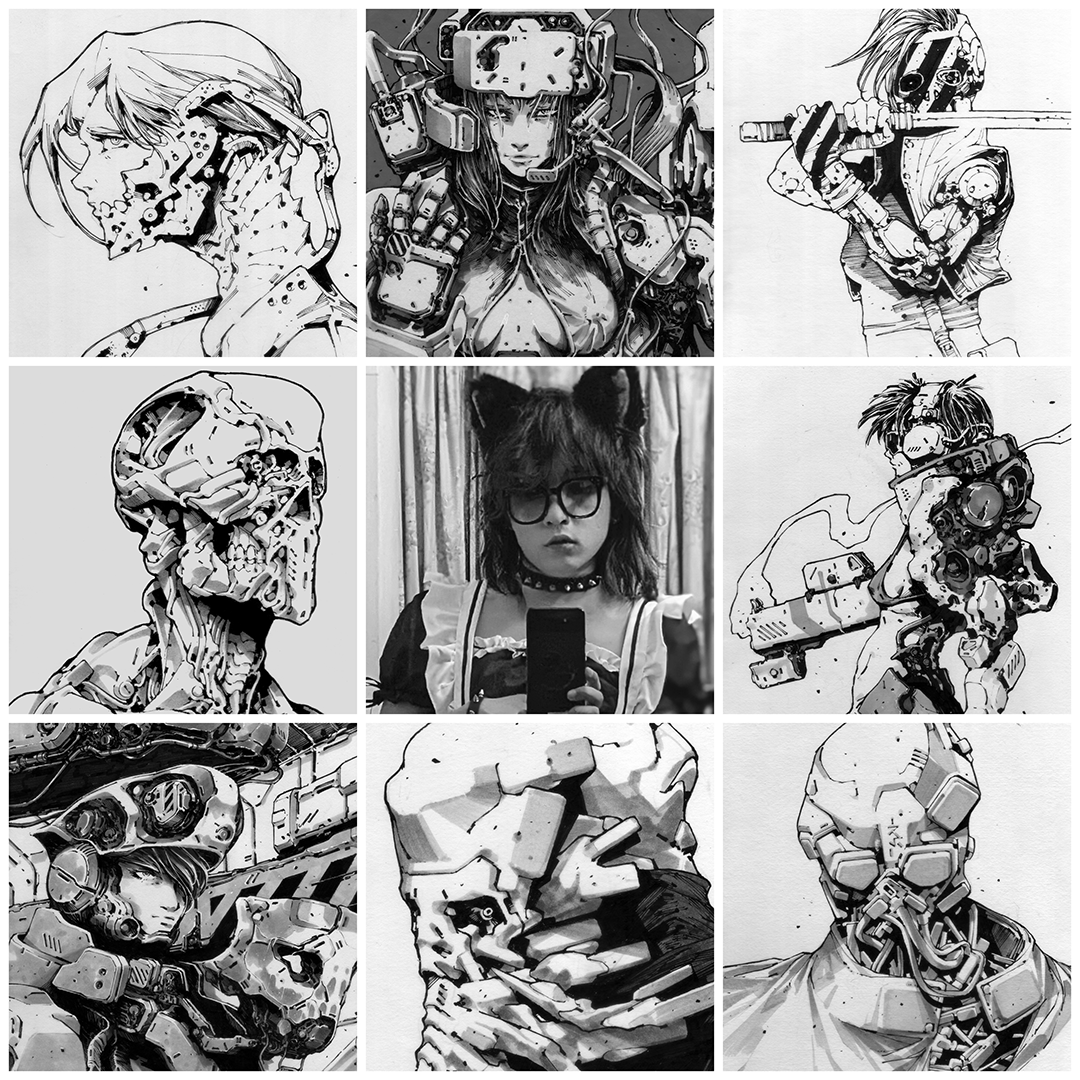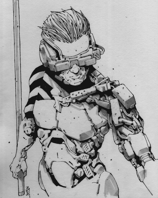 #PortfolioDay Hye I'm Rome and i love to draw Cyberpunk and Biomecha stuff traditionally with Pentel Brushpens