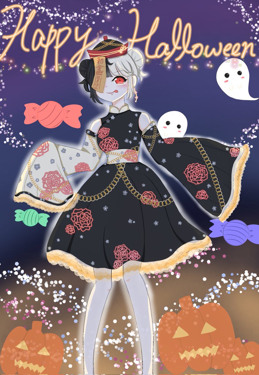 Happy Halloween!! キョンシーまぼさん描きました! @MA_BO_DO__FU #まぼ絵 #HappyHalloween2021 #イラスト #イラスト好きさんと繋がりたい #絵柄が好みって人にフォローされたい