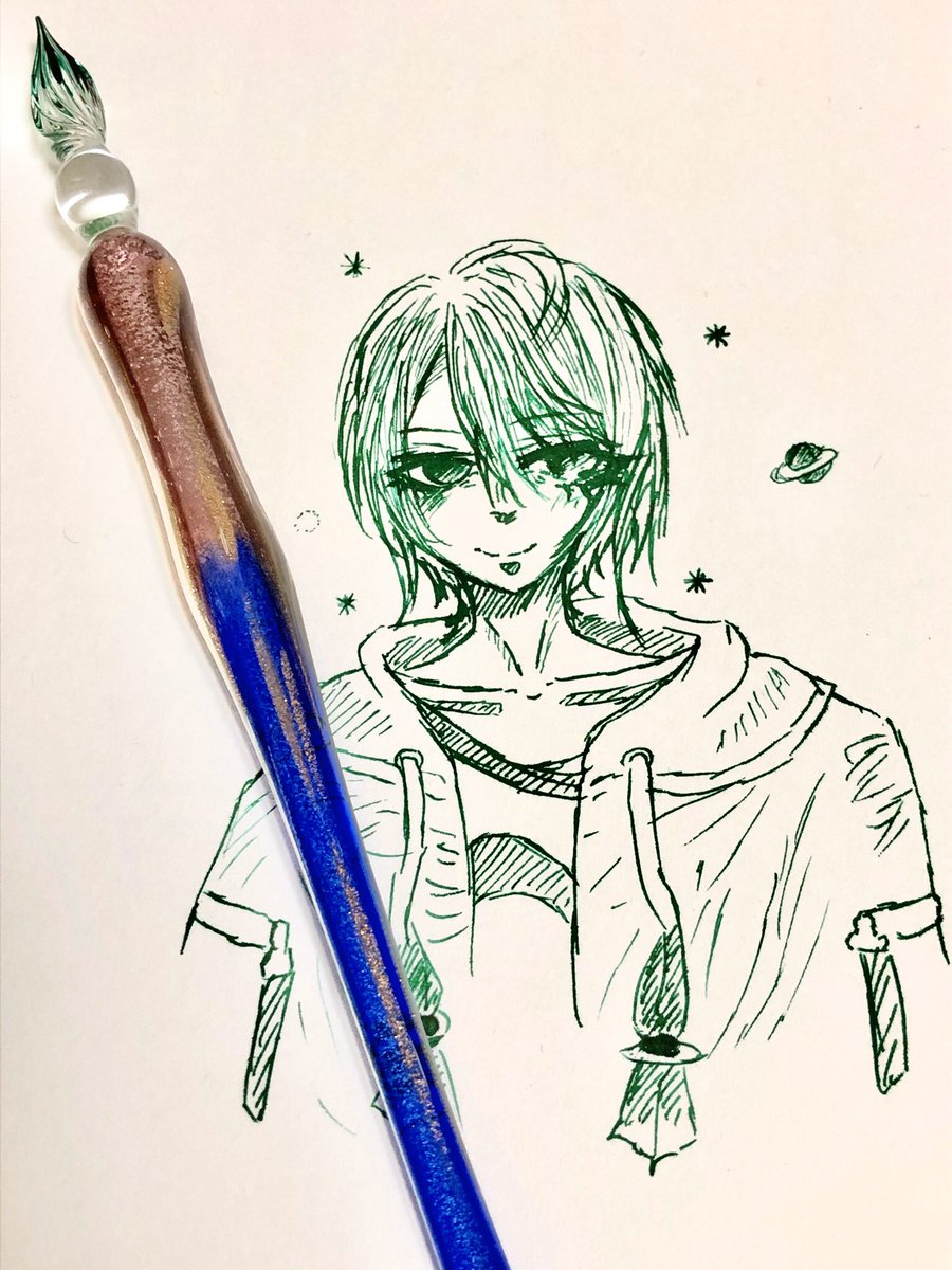 2 8 #てんくうあーと ガラスペンの試し書き(イラスト)も兼ねて空くん描いてみました! (ガラスペンの雰囲気空くんに似てていい感じな気がしてたり…) 20/10/21 21:38