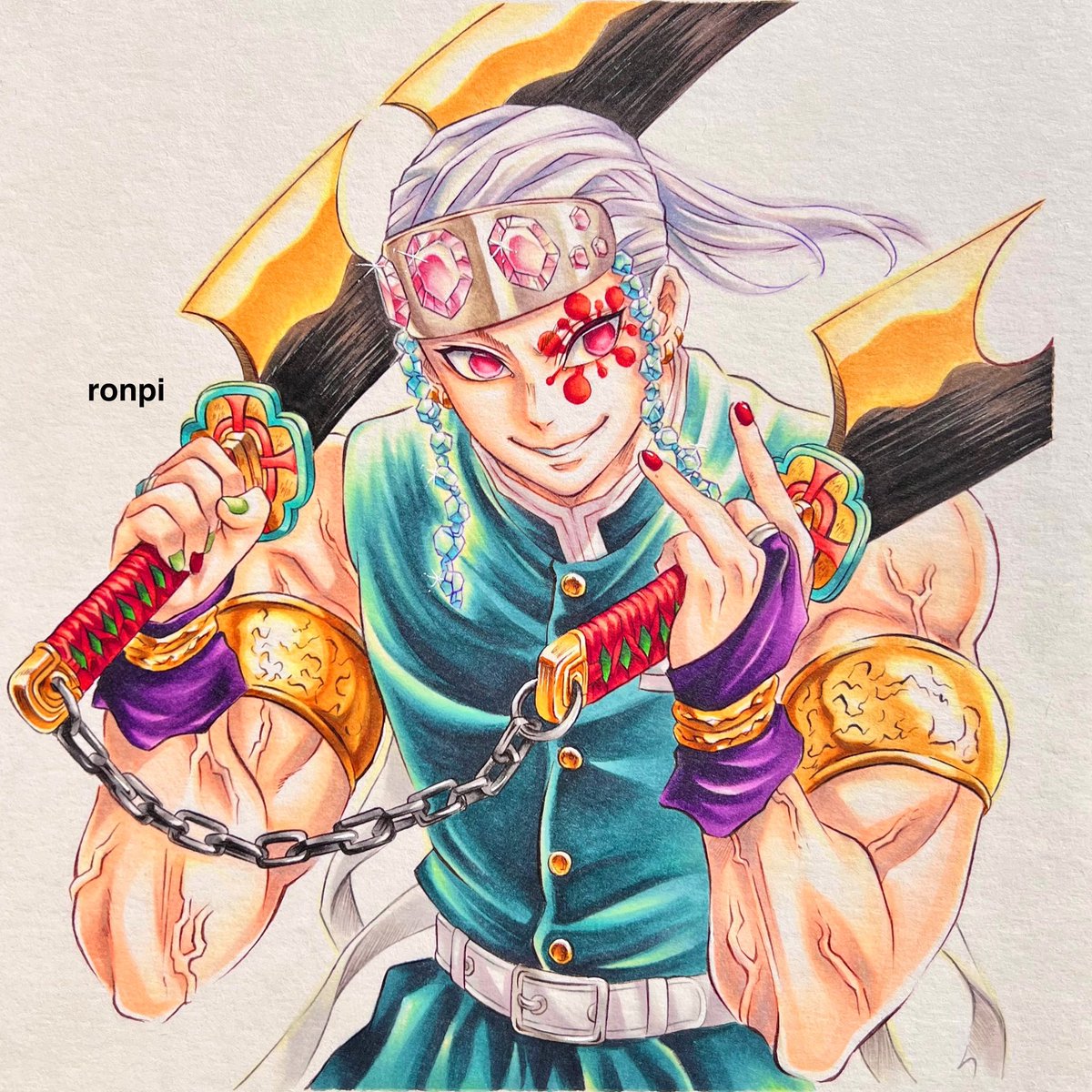 遊郭編最終回のエンドロールの天元さん模写しましたー!!!!!!!!!!💪( ¨̮ )💪 #鬼滅の刃 #模写 #コピックイラスト