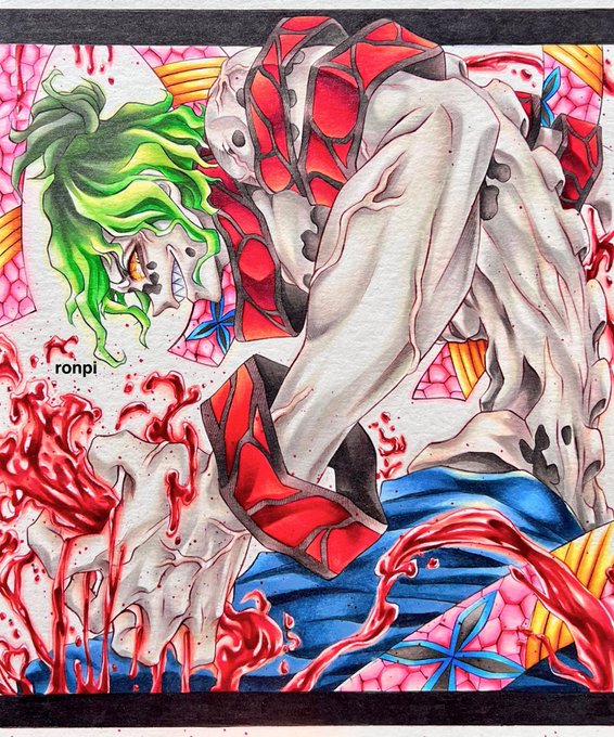 21 218 妓夫太郎ー!!!! 元がモノクロの色紙だったので好きに塗りました🙇🏻♀️ #模写 #鬼滅の刃 #コピックイラスト 22/06/25 22:01