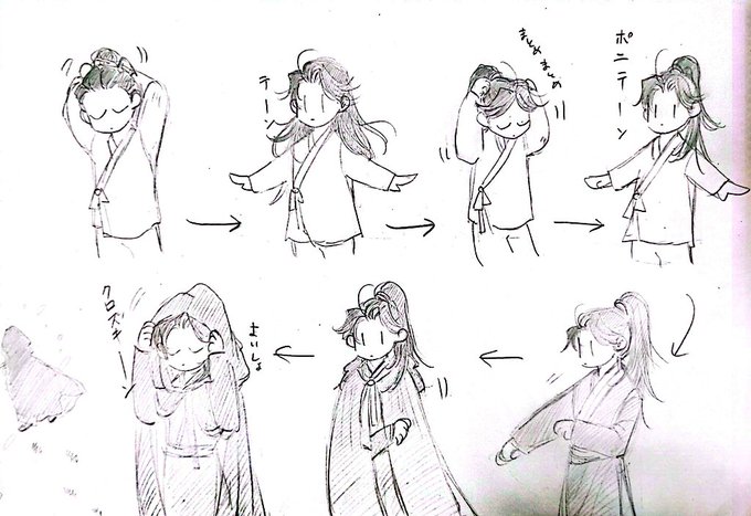 黒頭巾あしゅになる前のお着替えの流れを妄想したらくがき