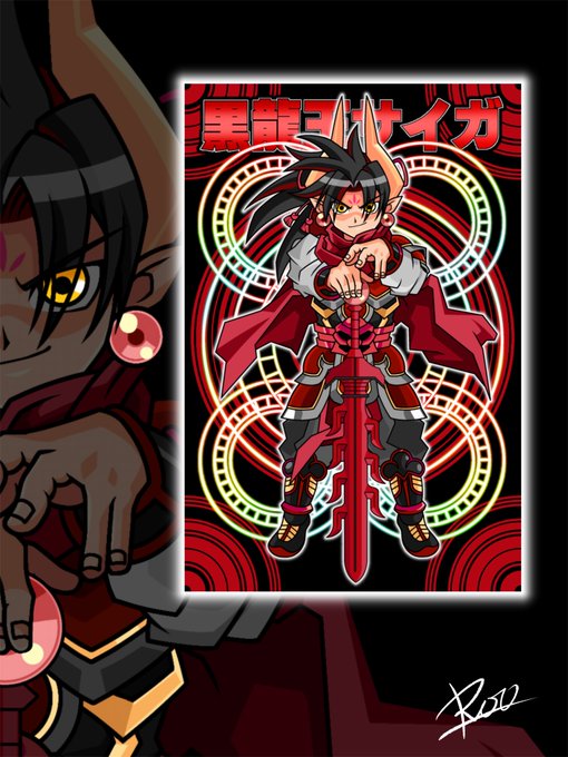 黒龍王サイガ_✍ 個人的に赤黒の組み合わせは好きです #神羅万象チョコ #オリジナルイラスト