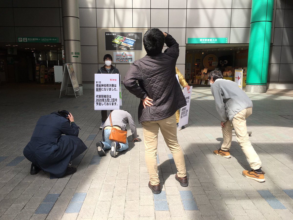 54 104 遥々例大祭の為に東京から車で乗り付けたのに会場で延期になったことを知らされショックを受ける俺ら カメラ 谷田部君(@purple_29373 ) #エア例大祭 20/03/22 11:35