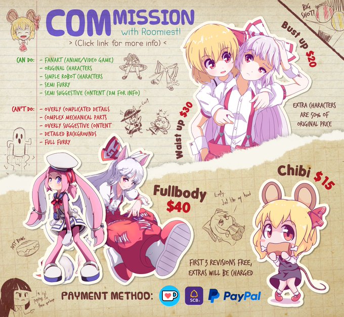 Taking urgent commission! need money to pay bills. (I'm the only one who can actually make money right now here and I don't get any help) 4 slots Ko-fi and Paypal only 1KOFI=1$ (memes have 5$ discount cuz funny) Look at pic for info More info read here: docs.google.com/document/d/1TD…