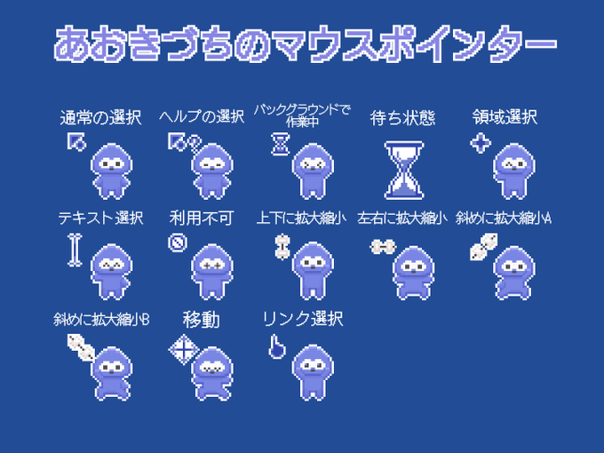 #SliPaint 思いついたので作ってみました、あおきづちのマウスポインタ―。 BOOTHにて配布しておりますのでよろしければどうぞ→rootofcat.booth.pm/items/4639094