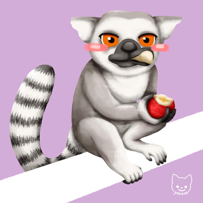 今日も1日お疲れ様です‼ あと少しで金曜日…しっかり食べてどうにかのりきりましょ~😤 #イラスト #イラストレーター #イラスト好きな人とつながりたい #絵柄が好みって人にフォローされたい #ワオキツネザル #モグモグ #動物好き #動物イラスト #かわいいと思ったらRT