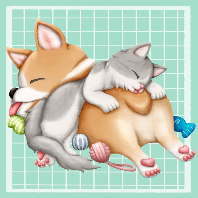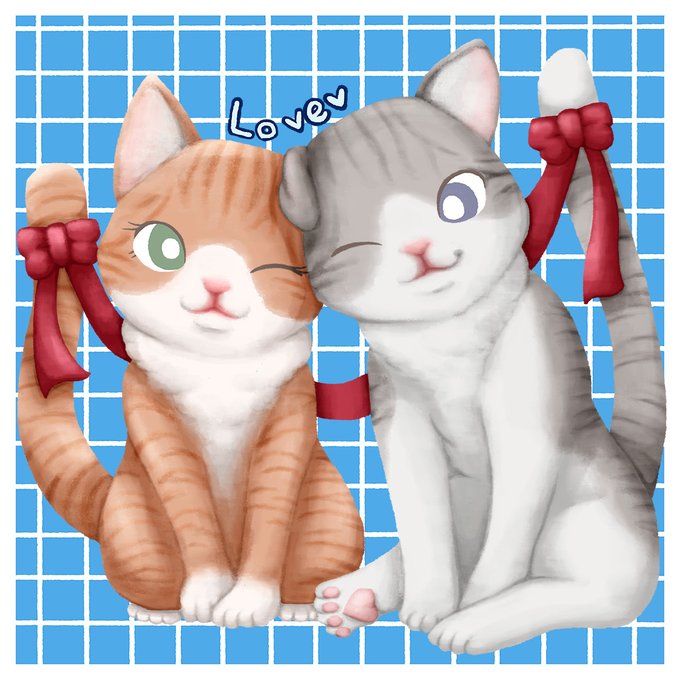 くっつきにゃんこ💖 ホワイトデーということで、カップルにゃんこを描きました😊 #イラスト #イラストレーター #イラスト好きな人と繋がりたい #絵柄が好きって人にフォローされたい #ホワイトデー #動物イラスト #動物好き #可愛いと思ったらRT